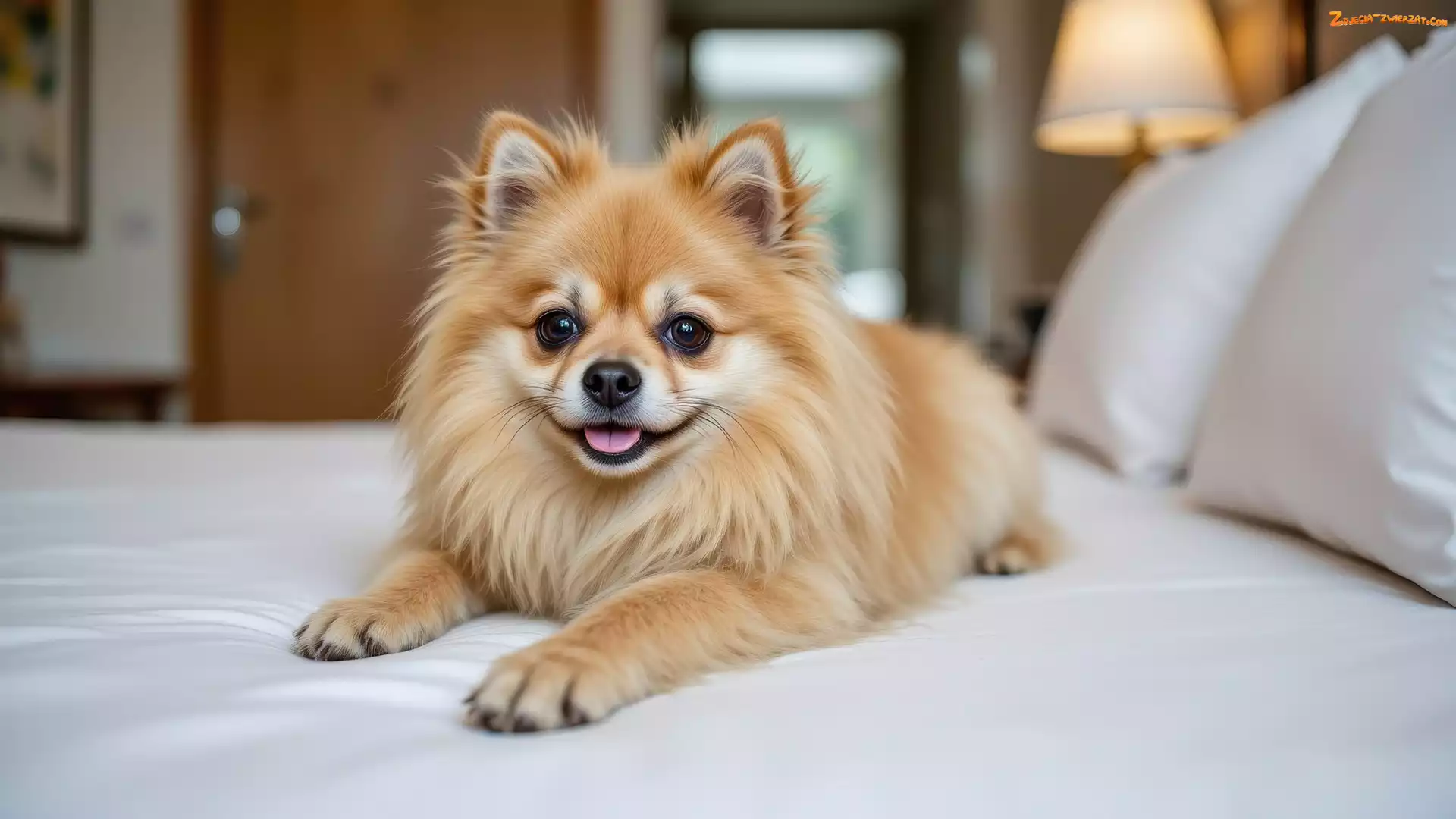 Zdjęcie: Poduszki, Pies, Leżący, Brązowy, Szpic miniaturowy, Łóżko