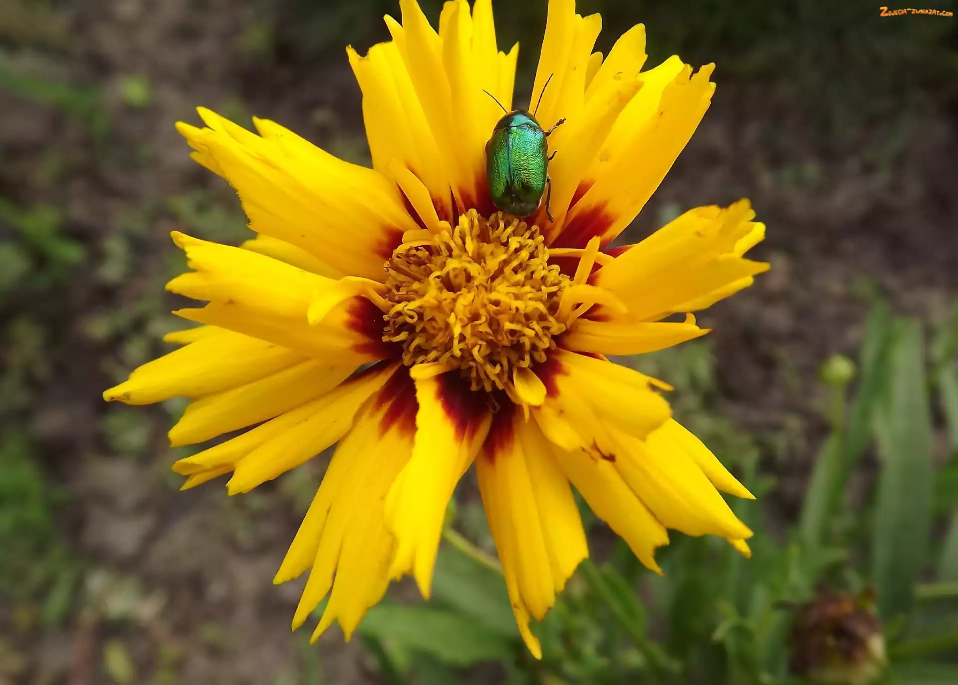 Zdjęcie: Brązowy, Kwiat, Żuk, Zielony, Żółto, Nachyłek