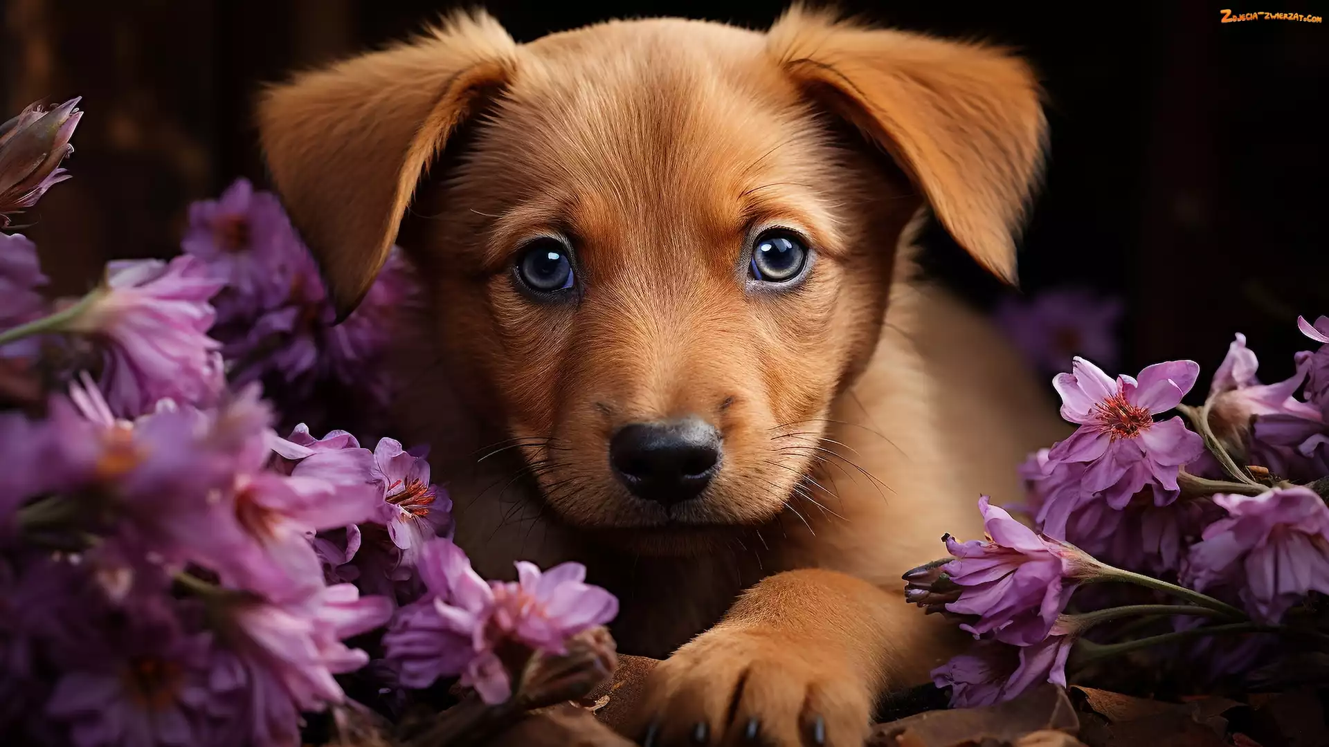 Zdjęcie: Pies, Szczeniak, Kwiaty, Brązowy