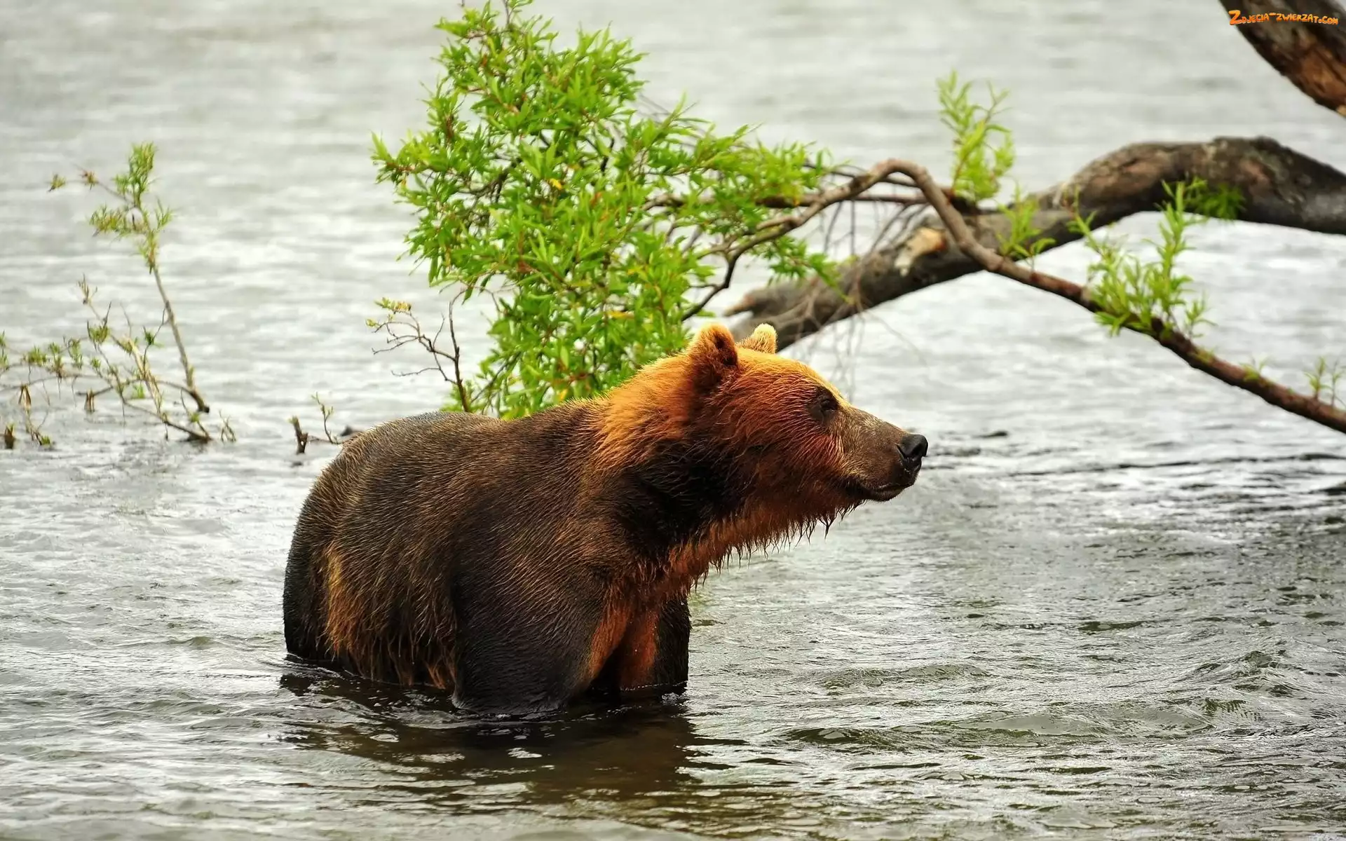 Zdjęcie: Brunatny, Drzewo, Niedzwiedz, Rzeka