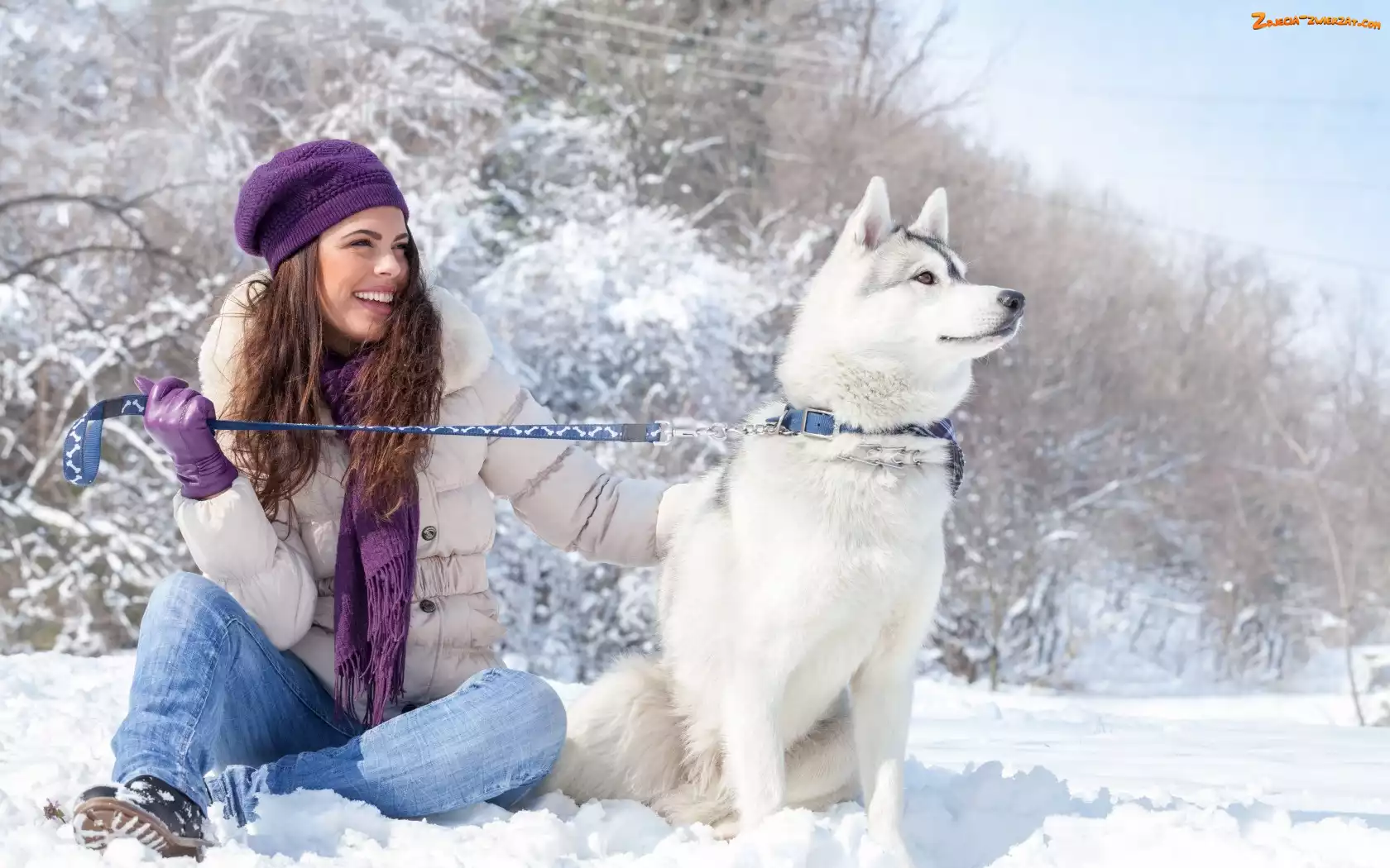 Zdjęcie: Brunetka, Śnieg, Siberian Husky, Zima
