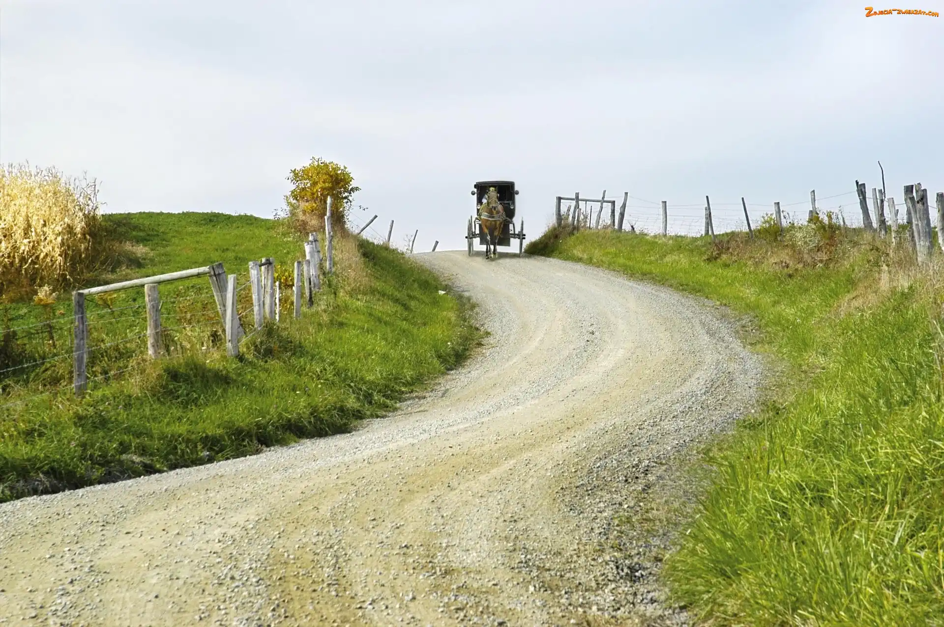 Zdjęcie: Bryczka, Trawa, Koń, Droga