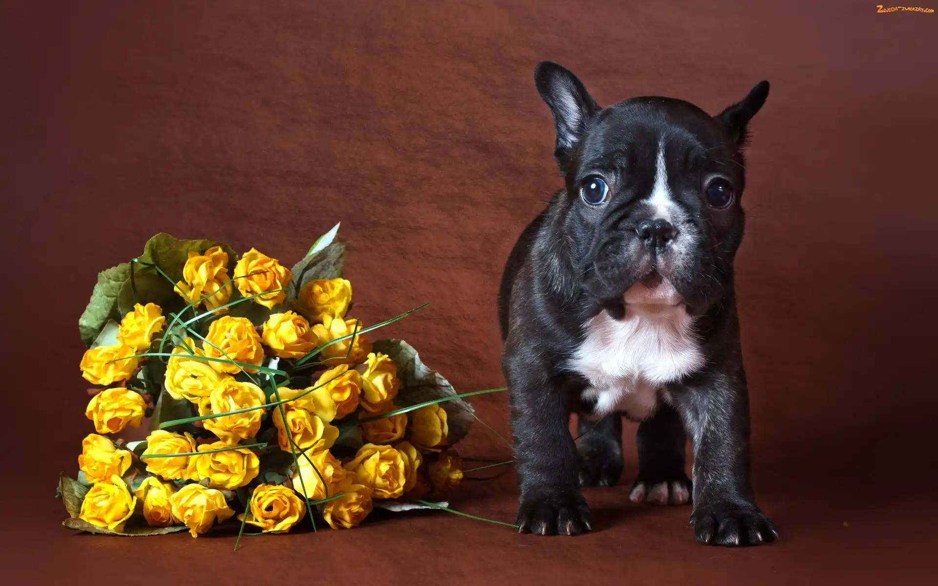 Zdjęcie: Bukiet, Róż, Szczeniak, Żółtych