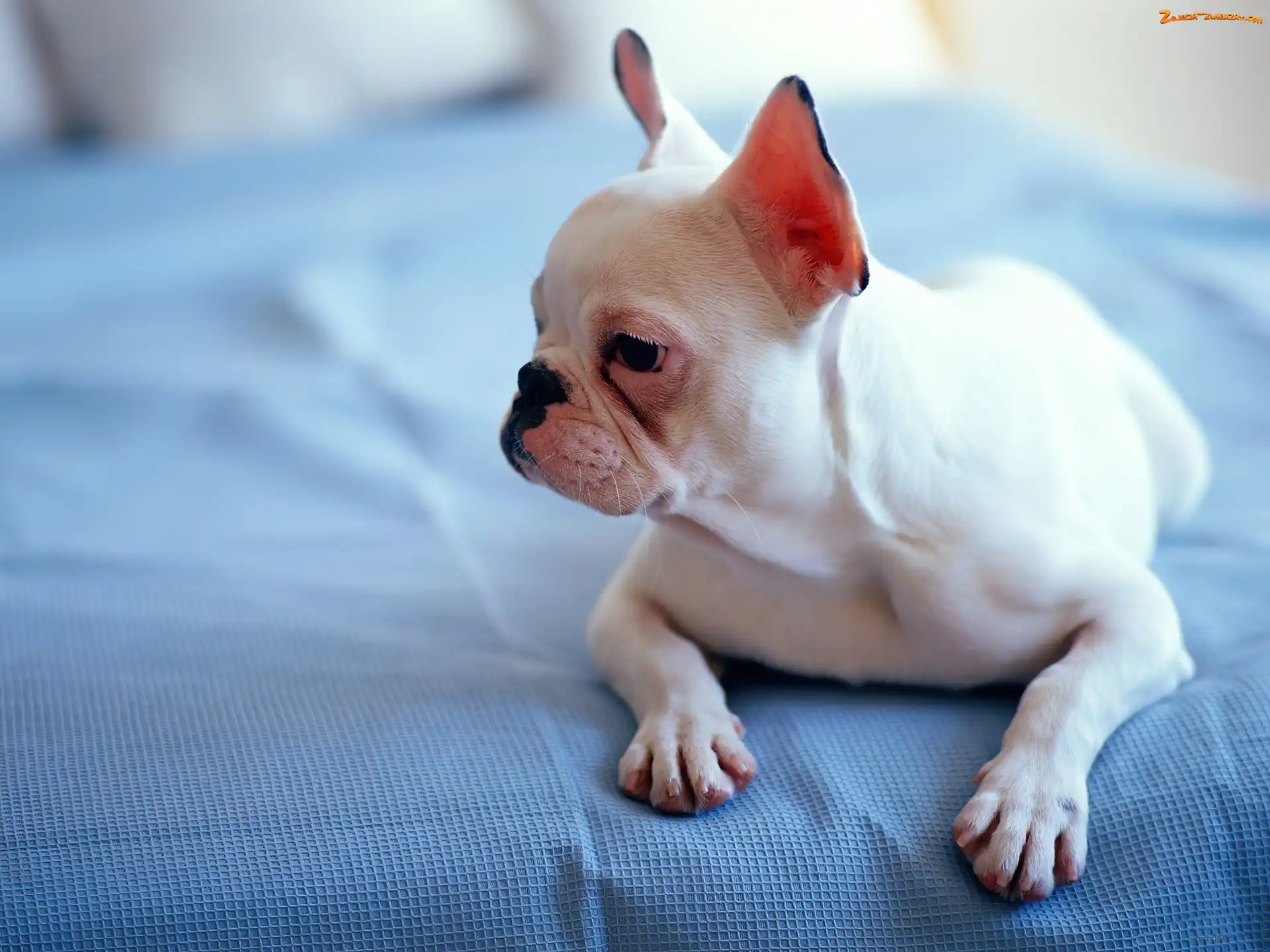 Zdjęcie: Buldog, Nakrycie, Biały, Niebieskie