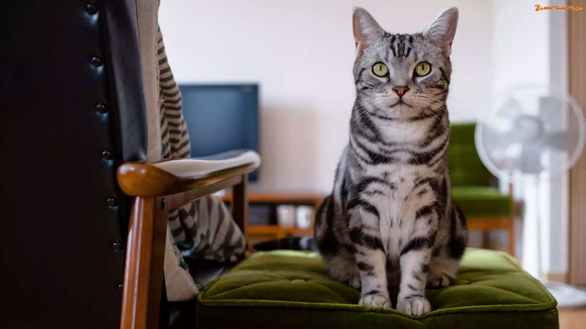 Zdjęcie: Bury, Poduszka, Kot, Zielona