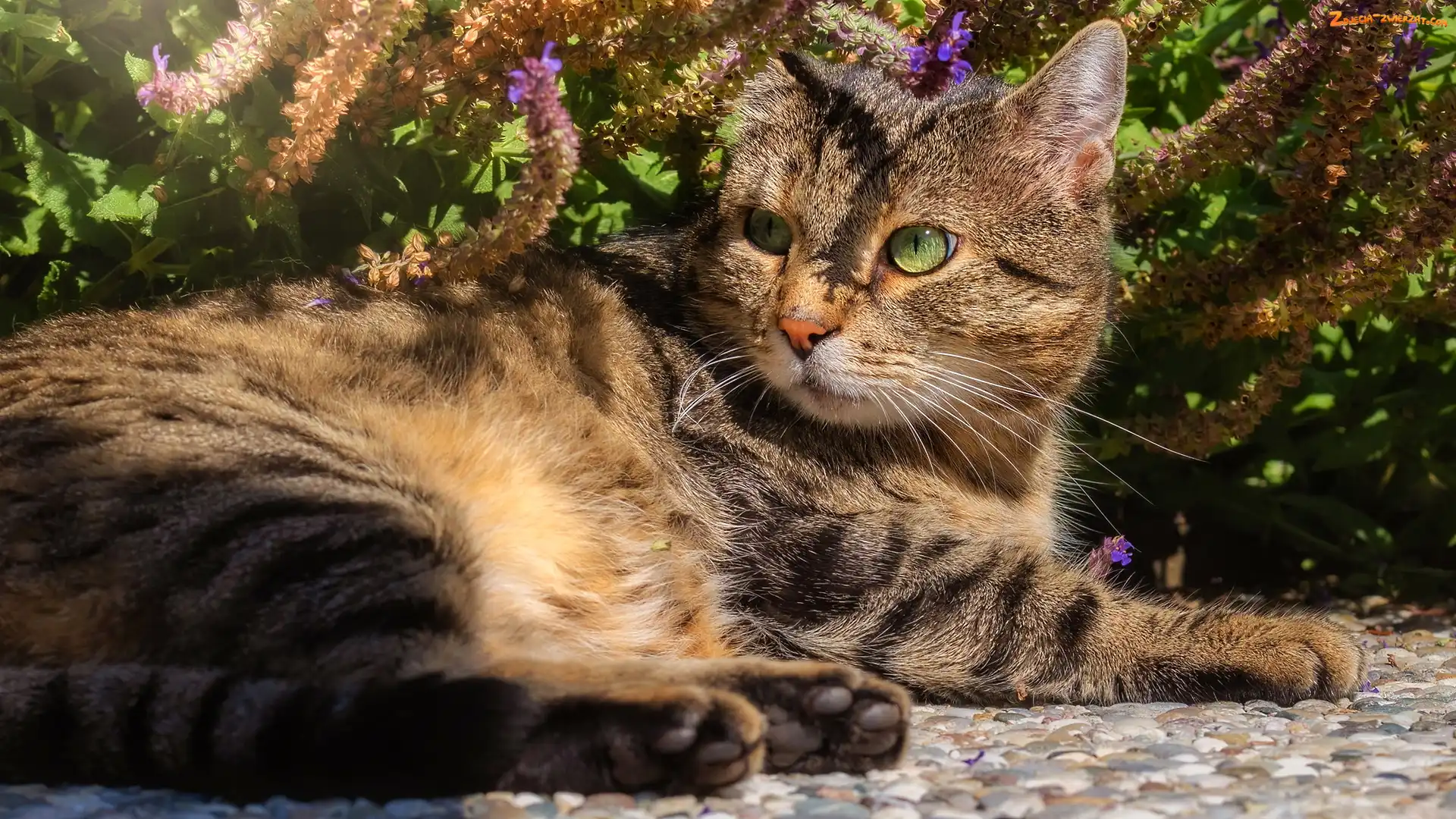 Zdjęcie: Bury, Rośliny, Leżący, Kot