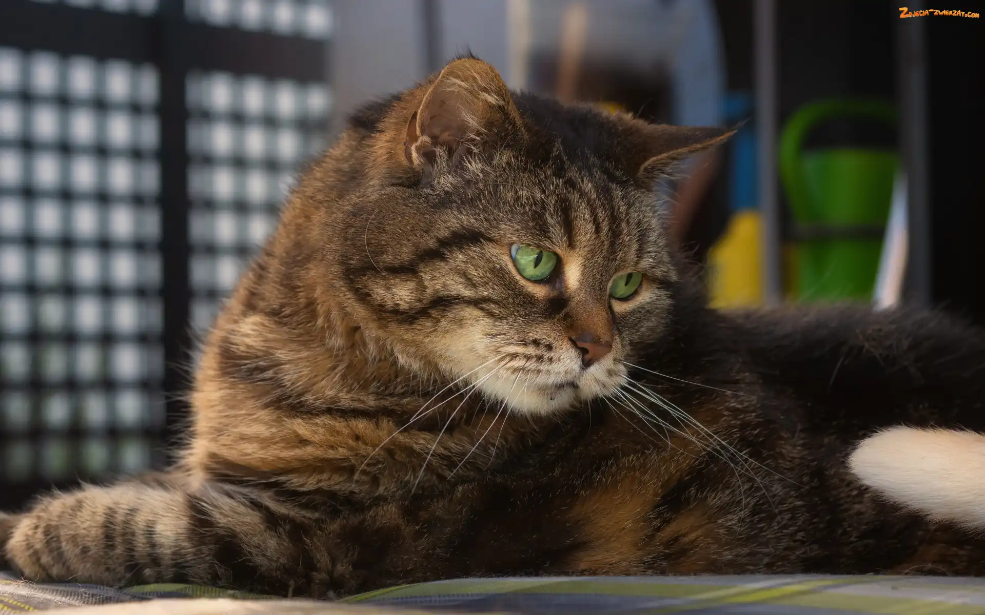 Zdjęcie: Bury, Spojrzenie, Leżący, Kot