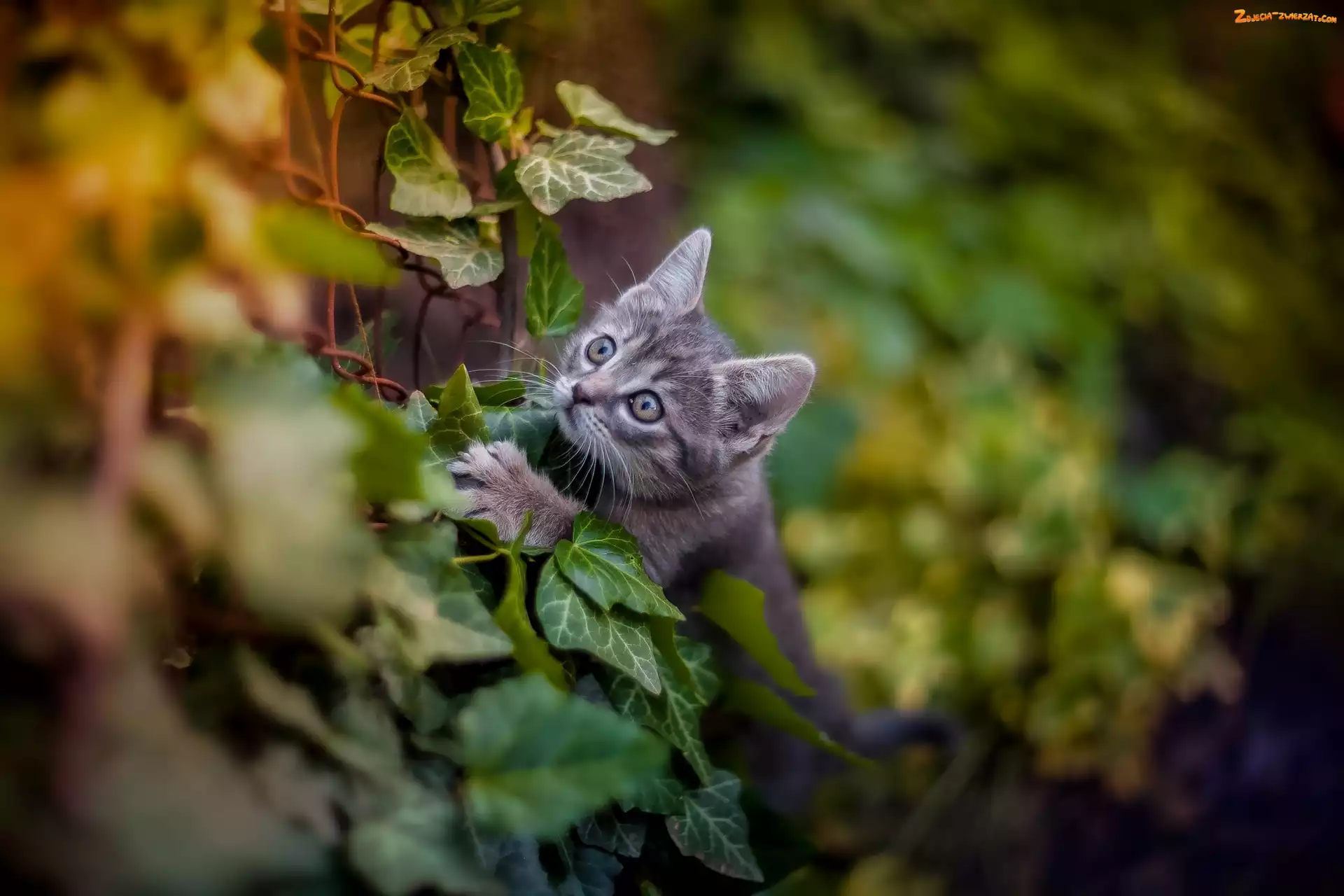 Zdjęcie: Bury, Liście, Mały, Kotek