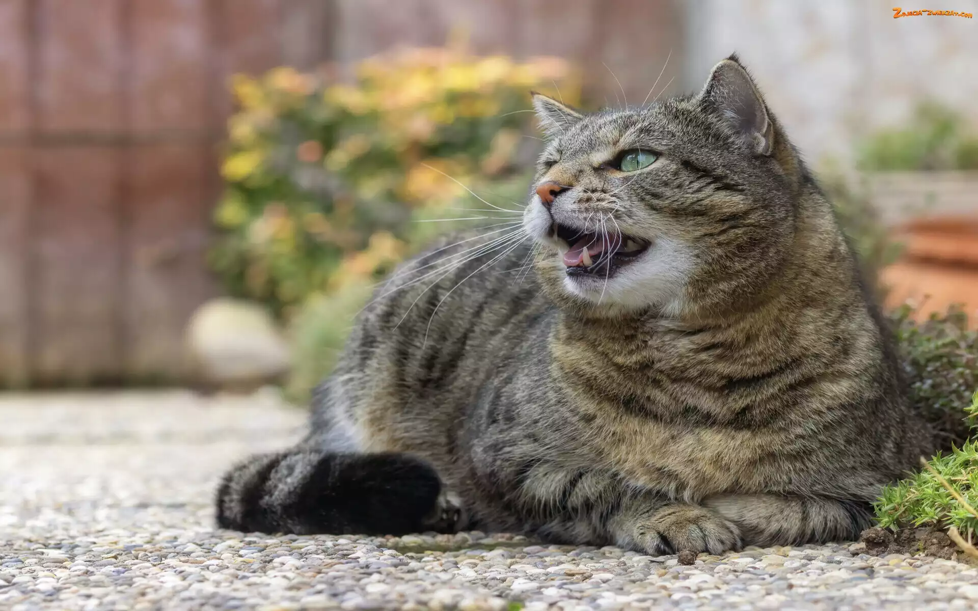 Zdjęcie: Pyszczek, Zielonooki, Leżący, Bury, Kot, Otwarty