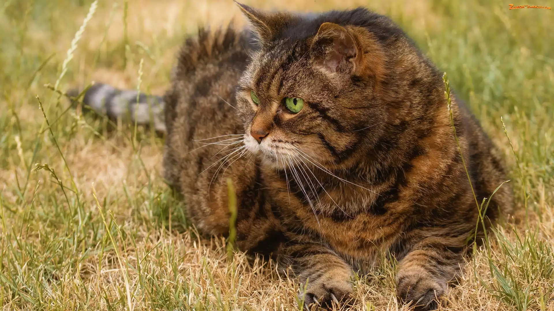 Kot, Bury, Trawa, Zielonooki, Leżący