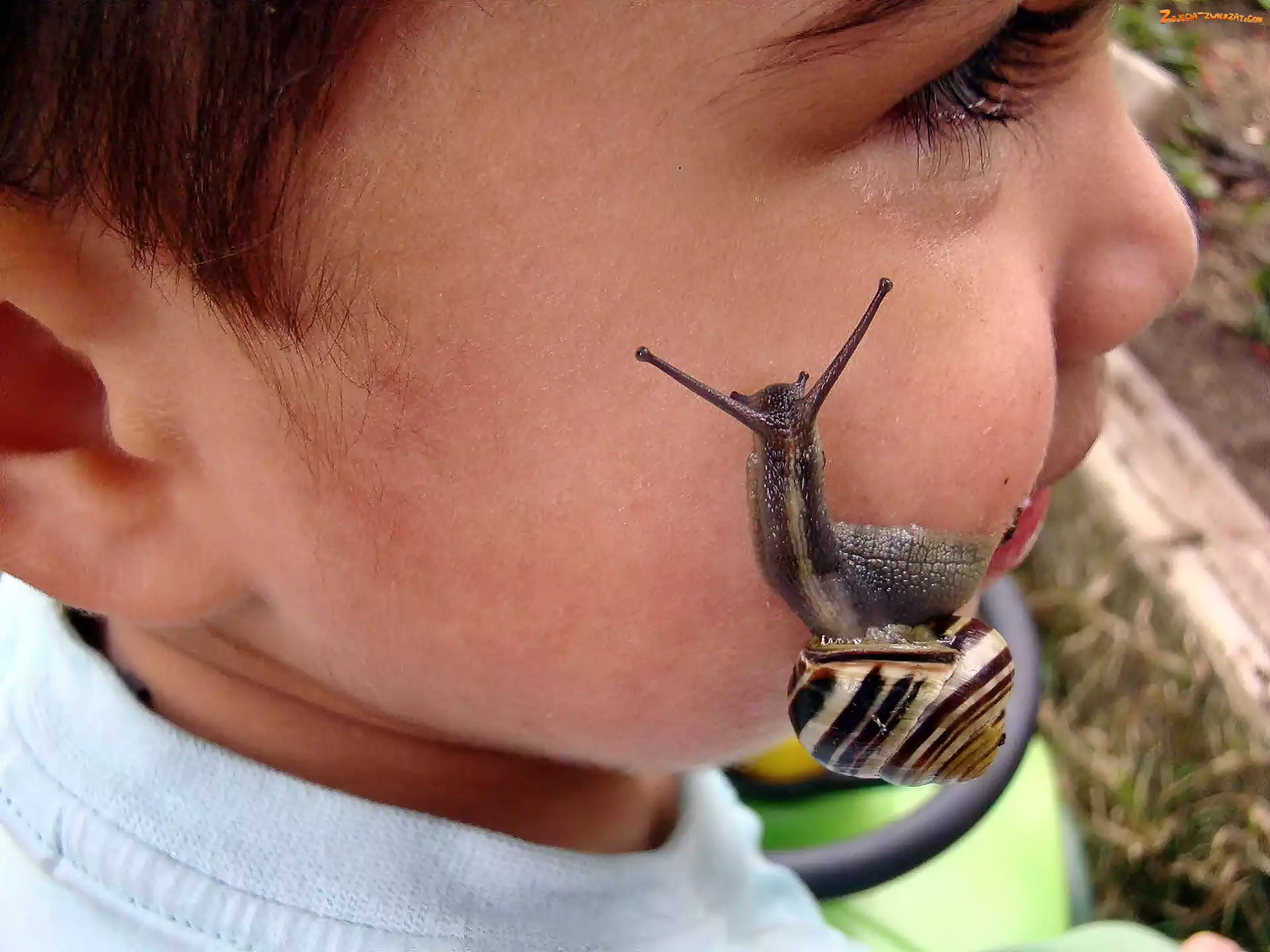 Buzia, Zbliżenie, Chłopczyk, Ślimak