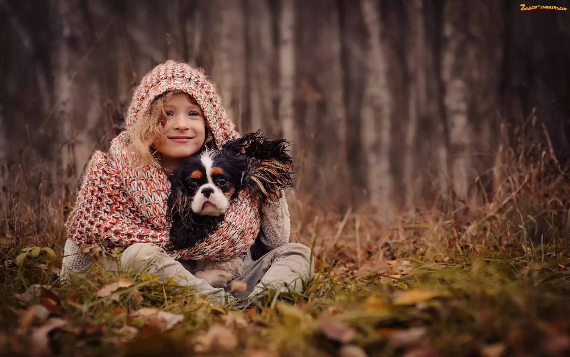 Zdjęcie: Cavalier king charles spaniel, Las, Dziewczynka
