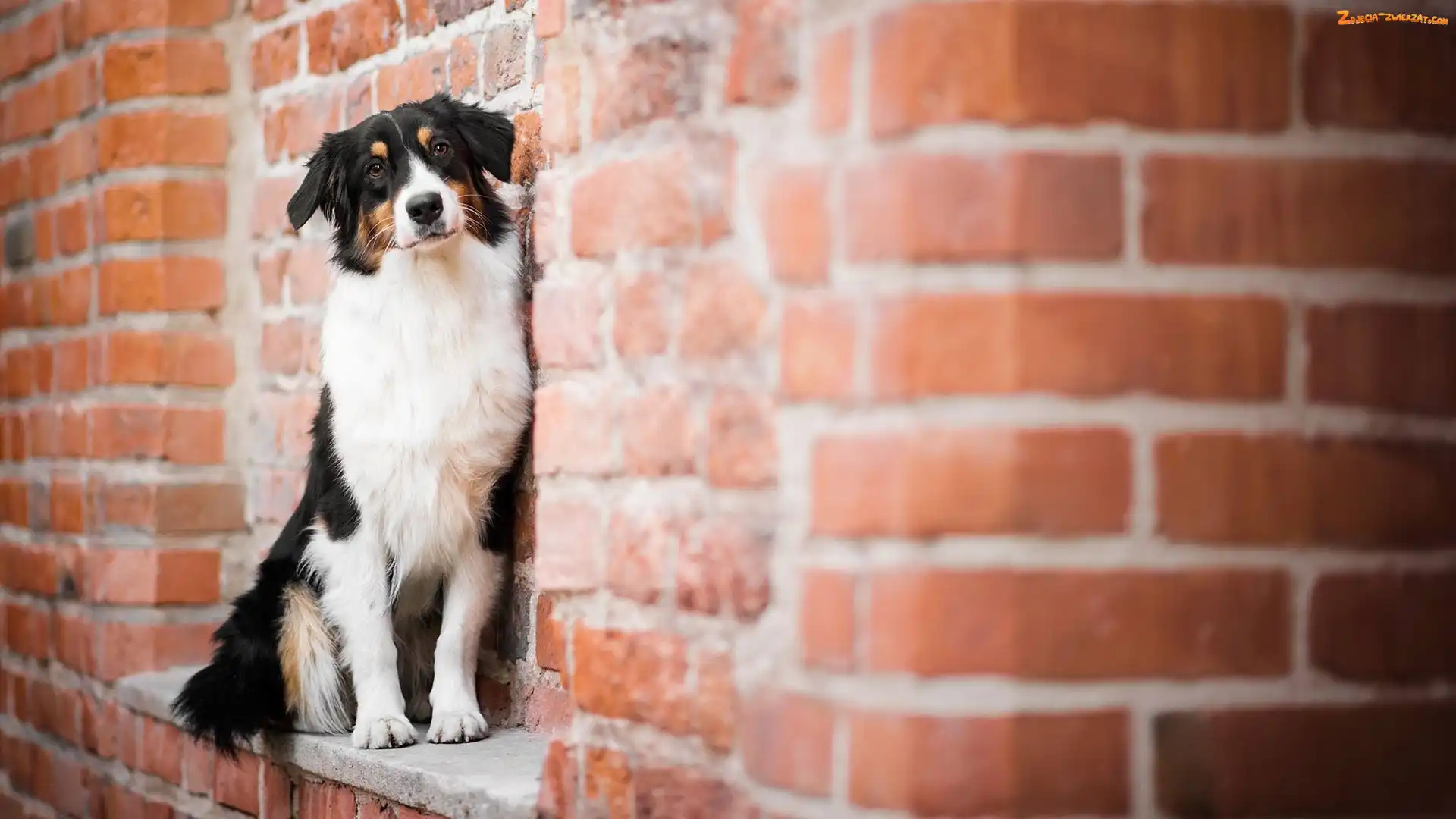 Zdjęcie: Cegły, Murek, Owczarek australijski, Pies, Ściana