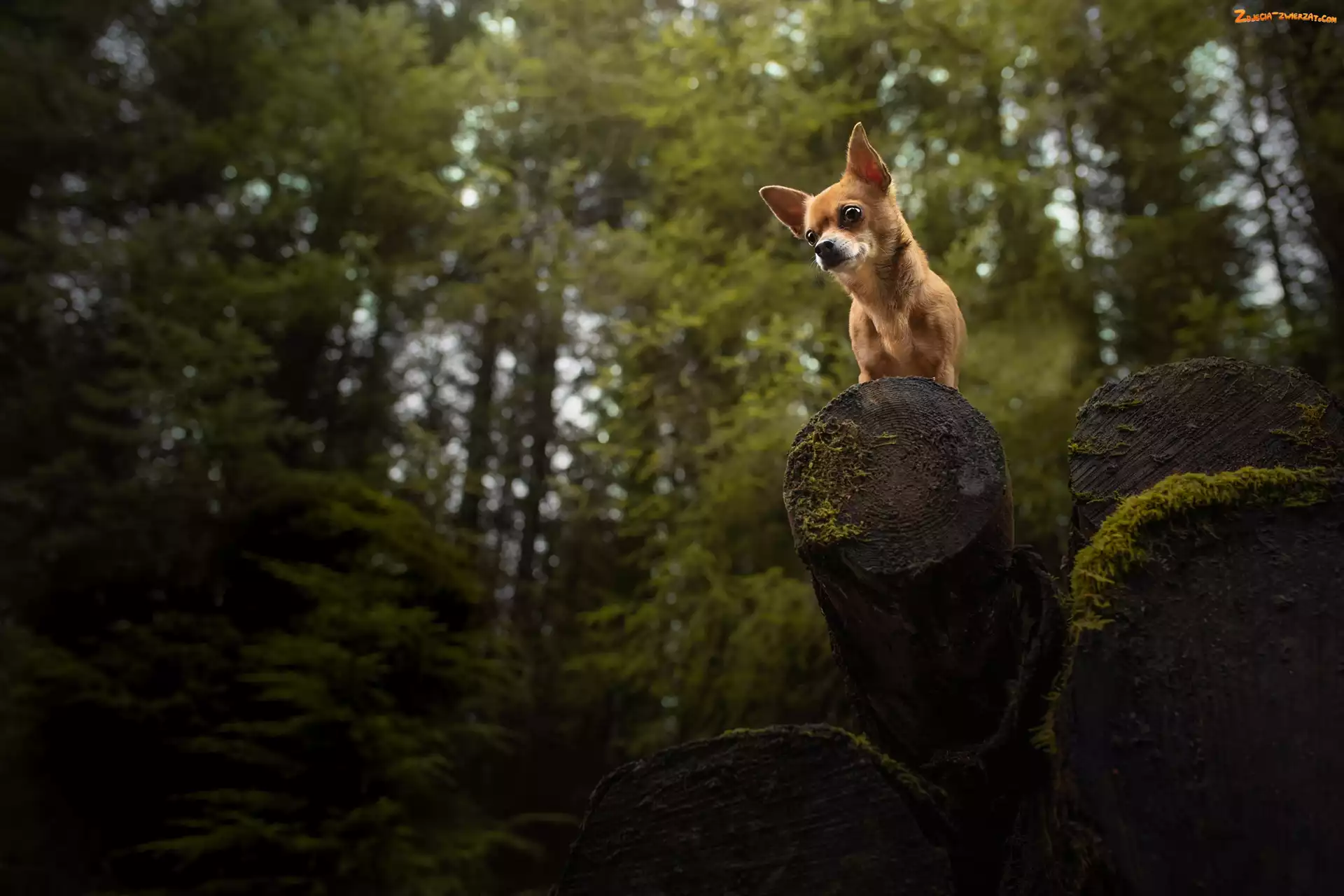 Zdjęcie: Chihuahua krótkowłosa, Las, Pies, Drewno