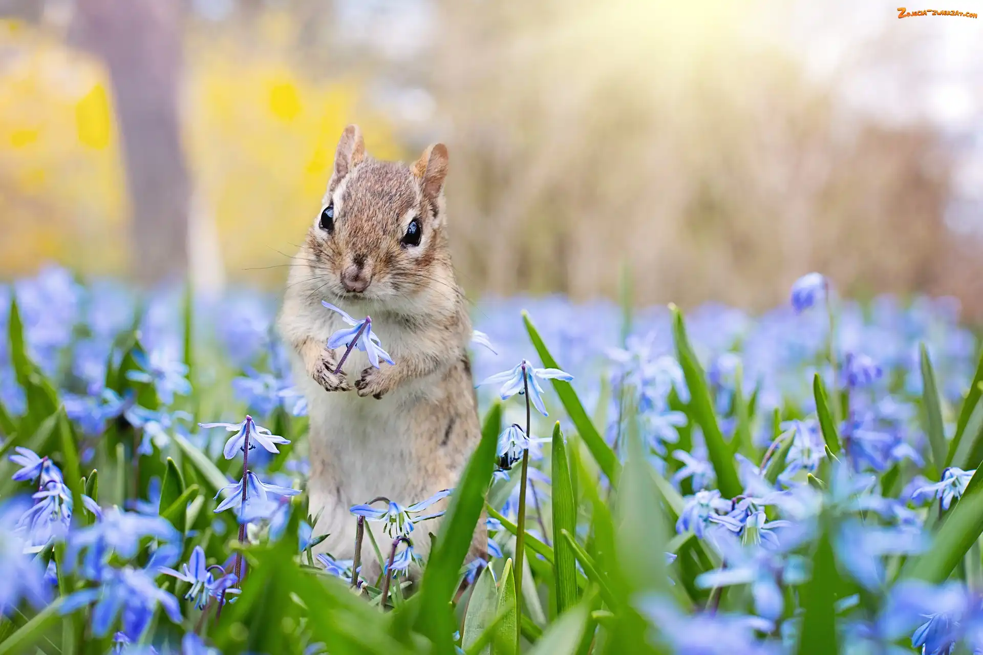 Chipmunk, Cebulica syberyjska, Wiewiórka ziemna, Kwiaty