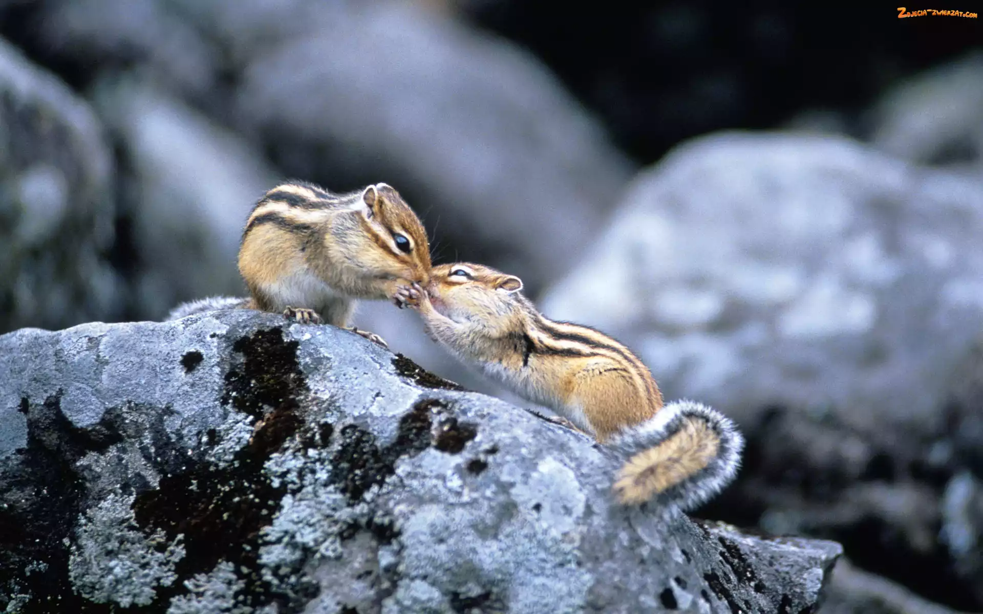 Zdjęcie: Chipmunki, Skały, Dwa, Buziak