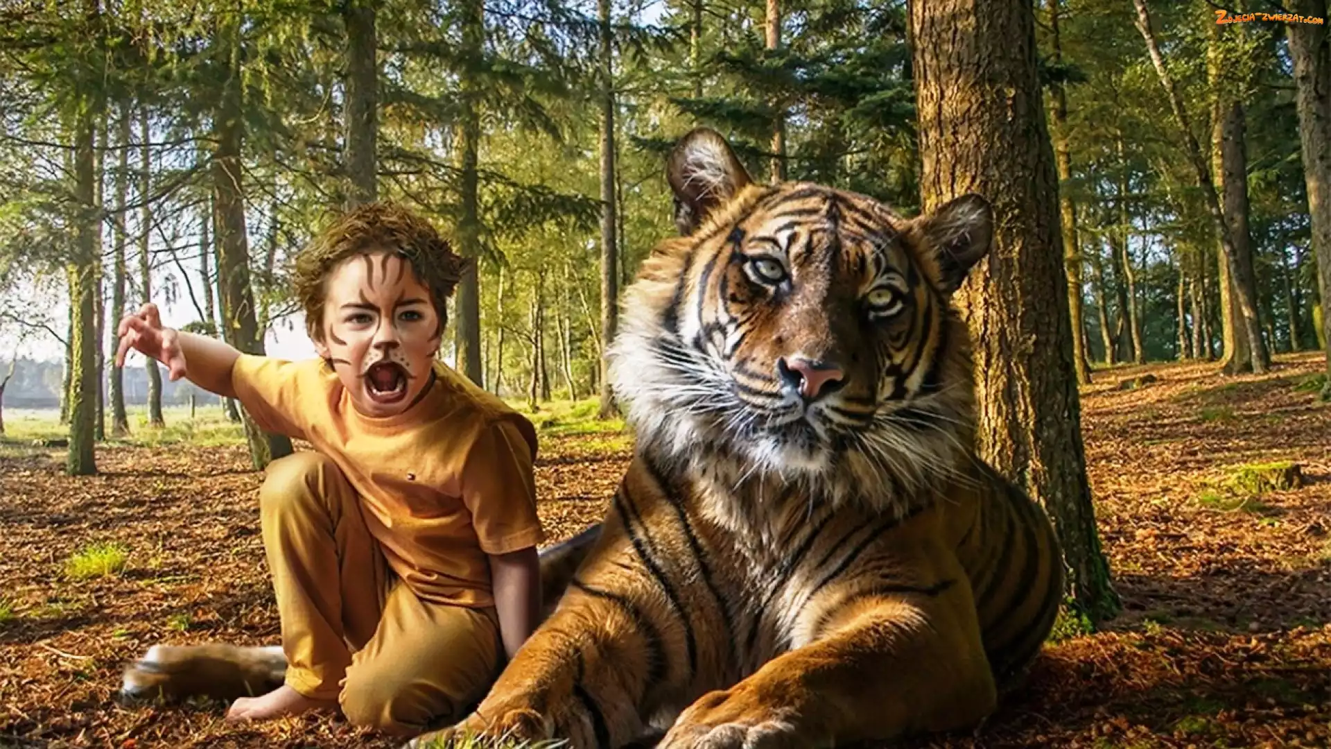 Zdjęcie: Las, Chłopczyk, Tygrys