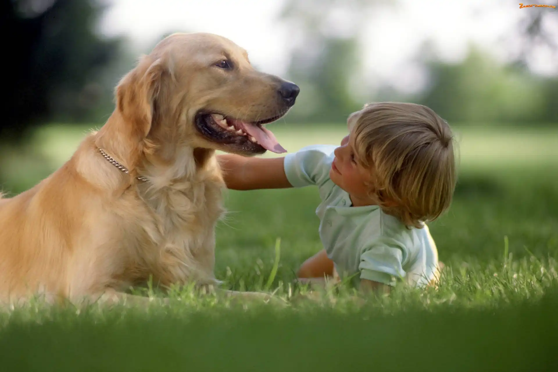 Zdjęcie: Trawa, Chłopczyk, Pies