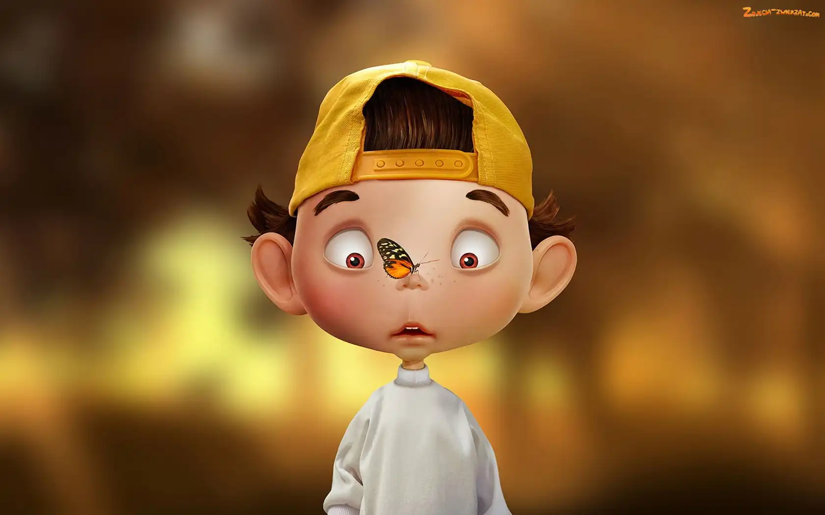 Zdjęcie: Żółta, Motyl, Chłopiec, Czapka