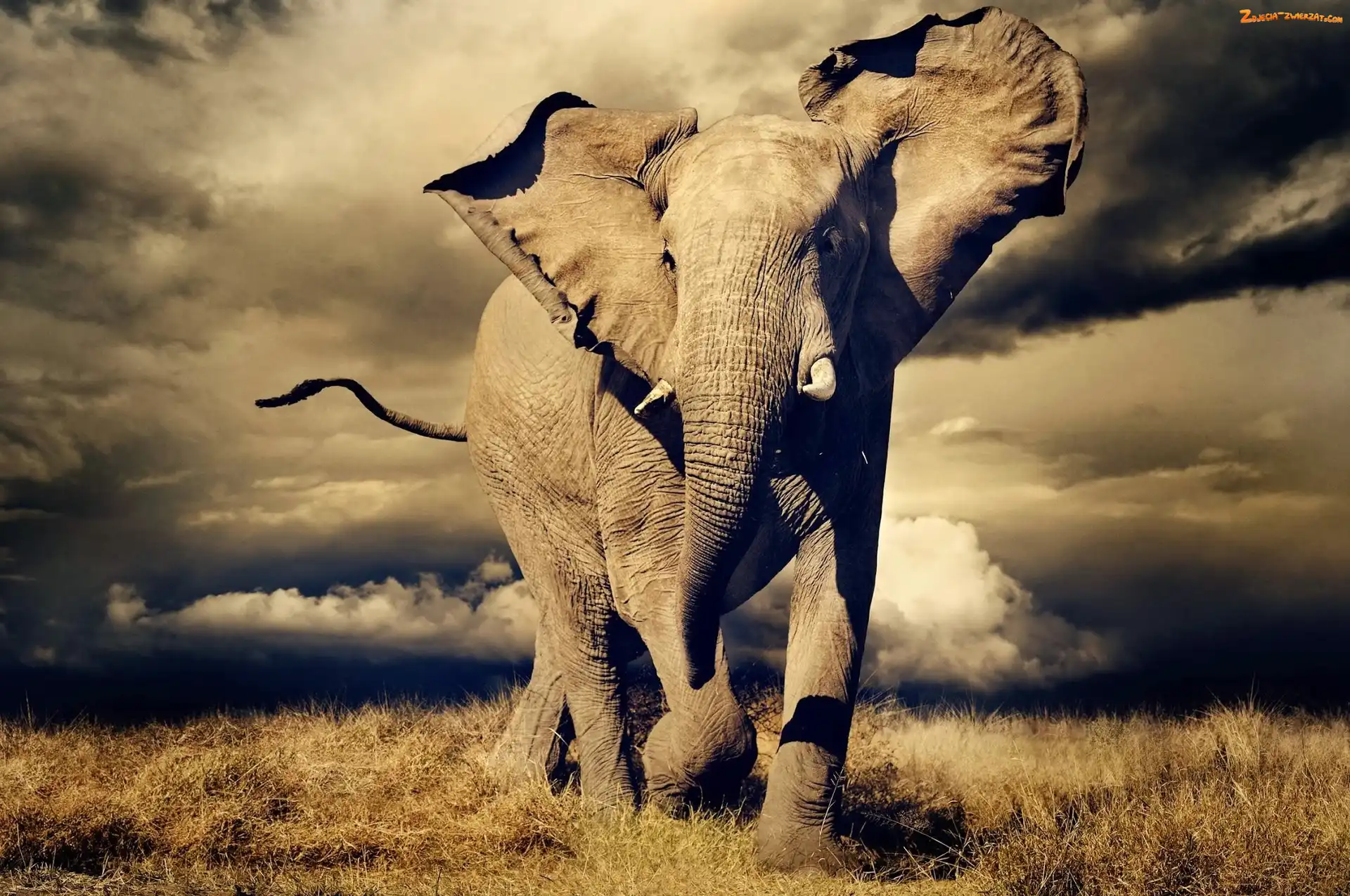Zdjęcie: Chmur, Trawa, Sawanna, Słoń