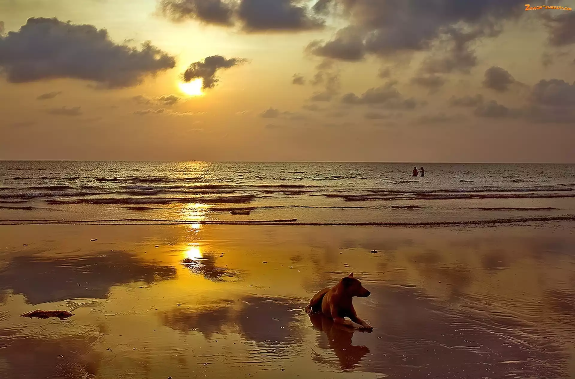 Zdjęcie: Chmury, Plaża, Morze, Pies, Fale