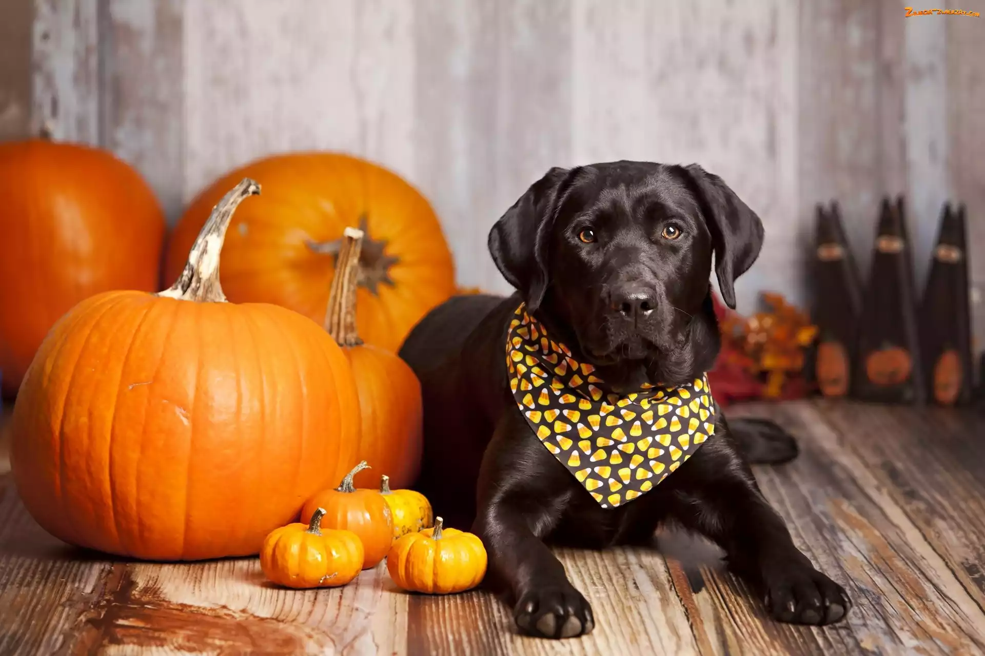 Zdjęcie: Chusteczka, Halloween, Pies, Dynie