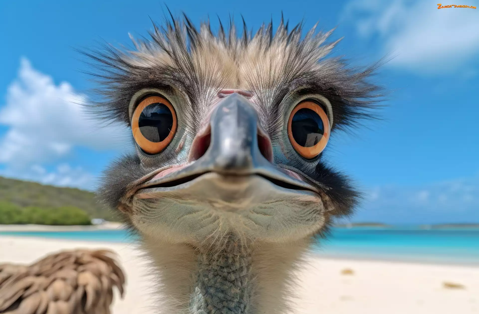 Zdjęcie: Ptak, Głowa, Struś, Ciekawość, Plaża, Grafika