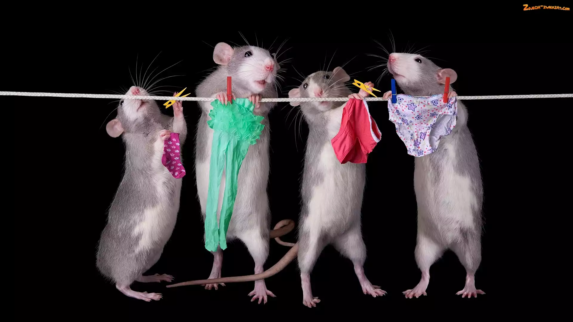 Zdjęcie: Ciemne tło, Pranie, Sznurek, Szczury, Klamerki