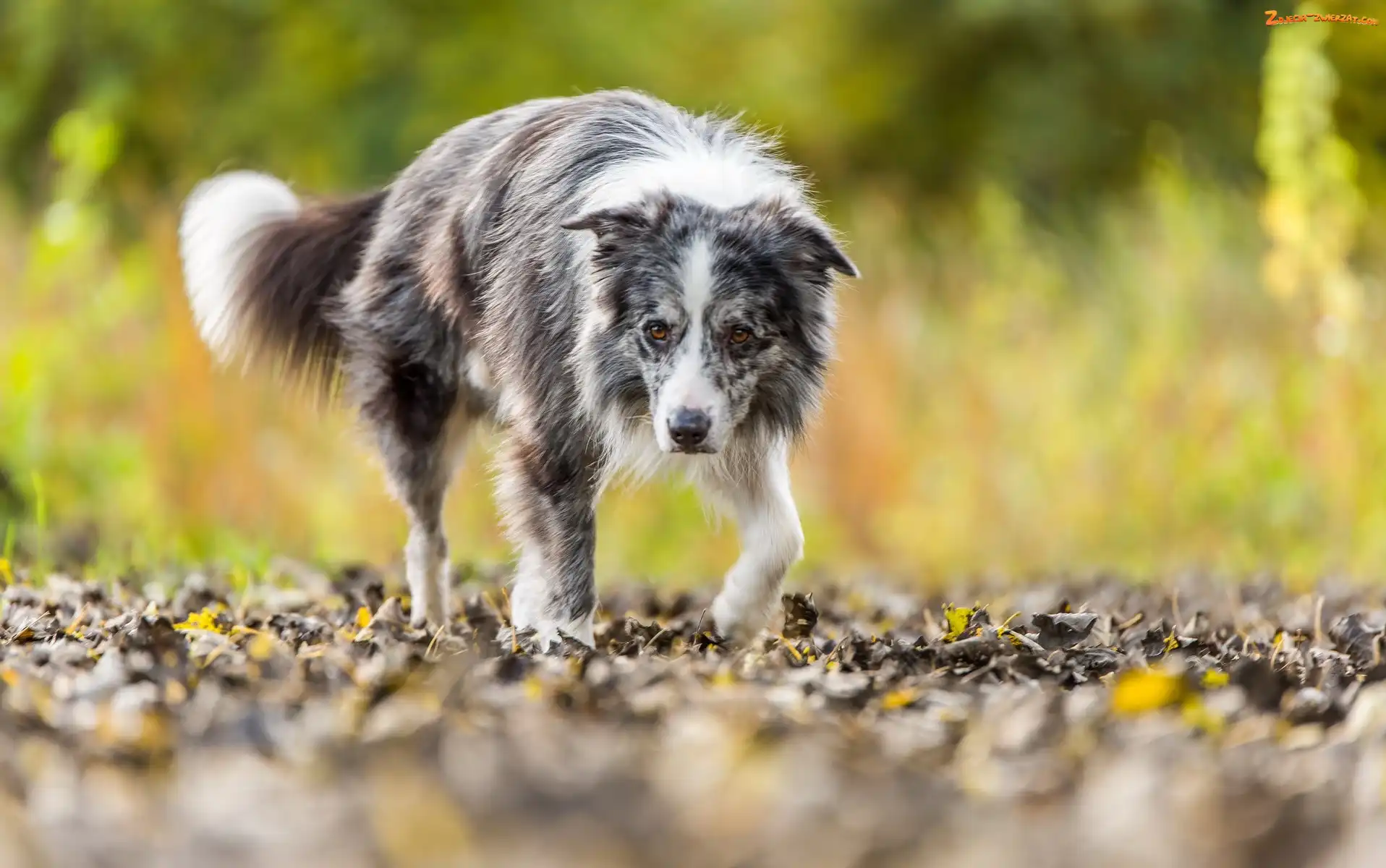 Zdjęcie: Border collie, Liście