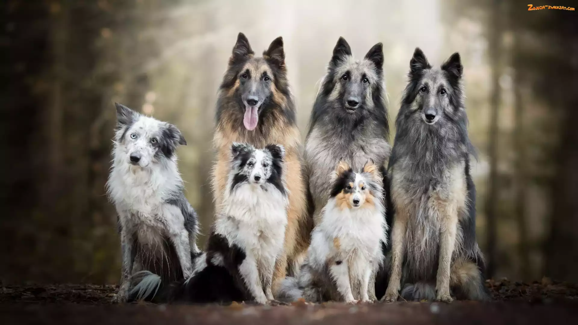 Trzy, Sześć, Owczarek szetlandzki, Border collie, Psów, Owczarki belgijskie tervueren
