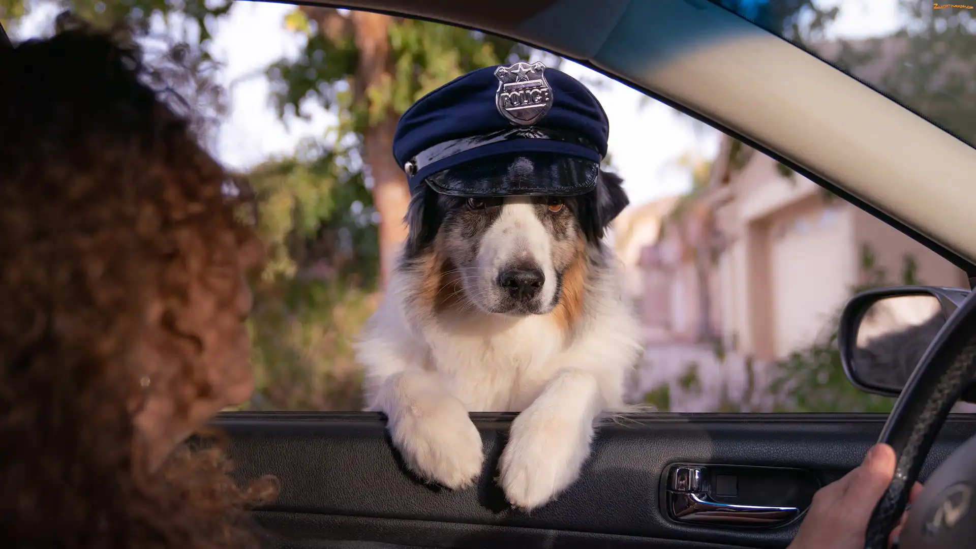 Zdjęcie: Czapka policyjna, Pies, Owczarek australijski