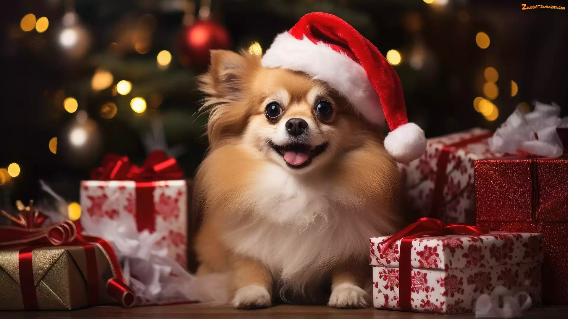 Zdjęcie: Mikołaja, Czapka, Prezenty, Pies, Chihuahua