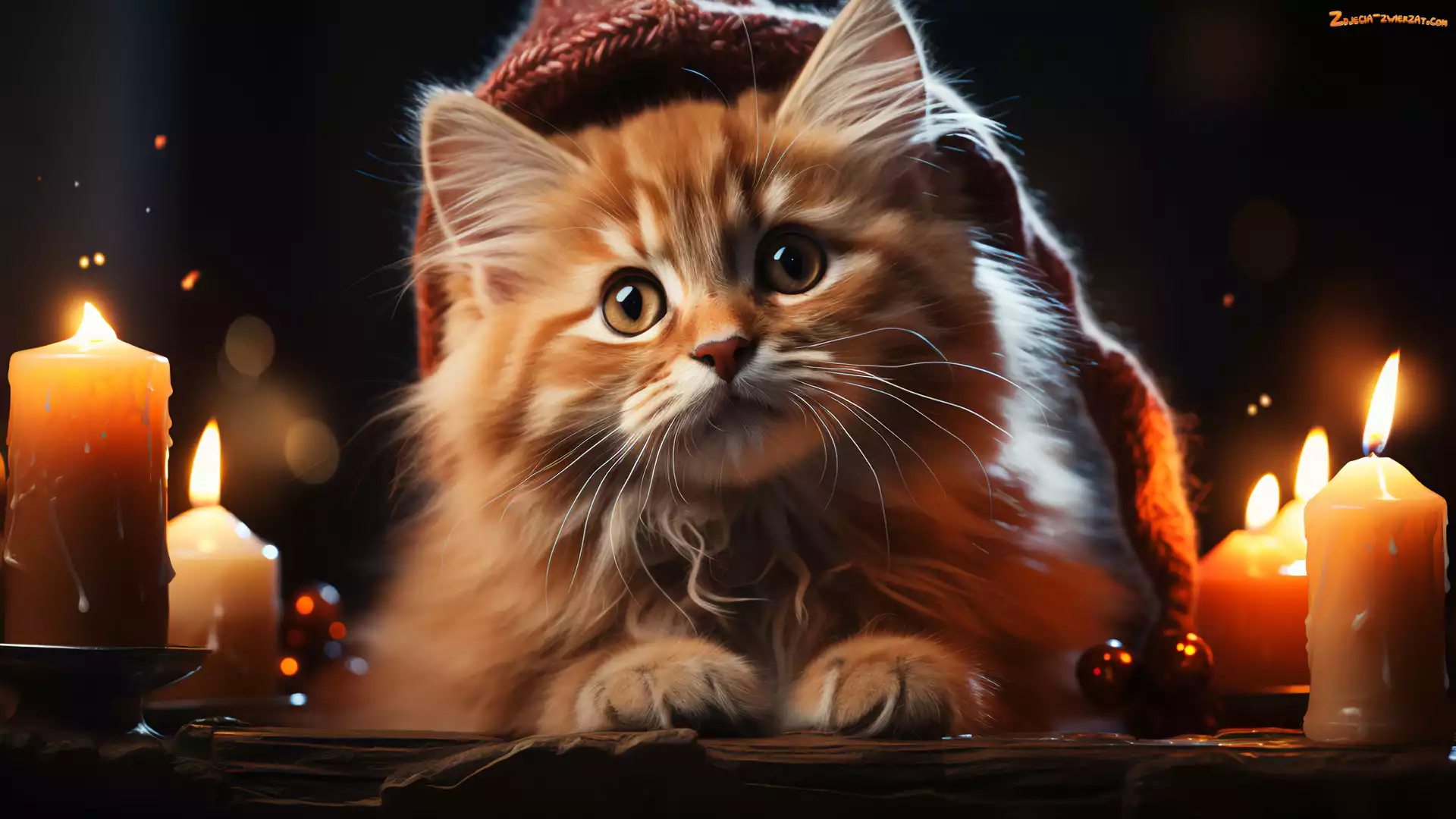 Zdjęcie: Puszysty, Kot, Świece, Czapka