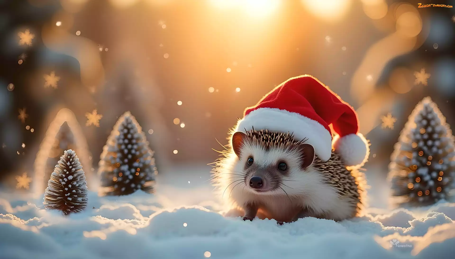 Zdjęcie: Grafika, Mikołaj, Jeż, Czapka, Śnieg, Szyszki
