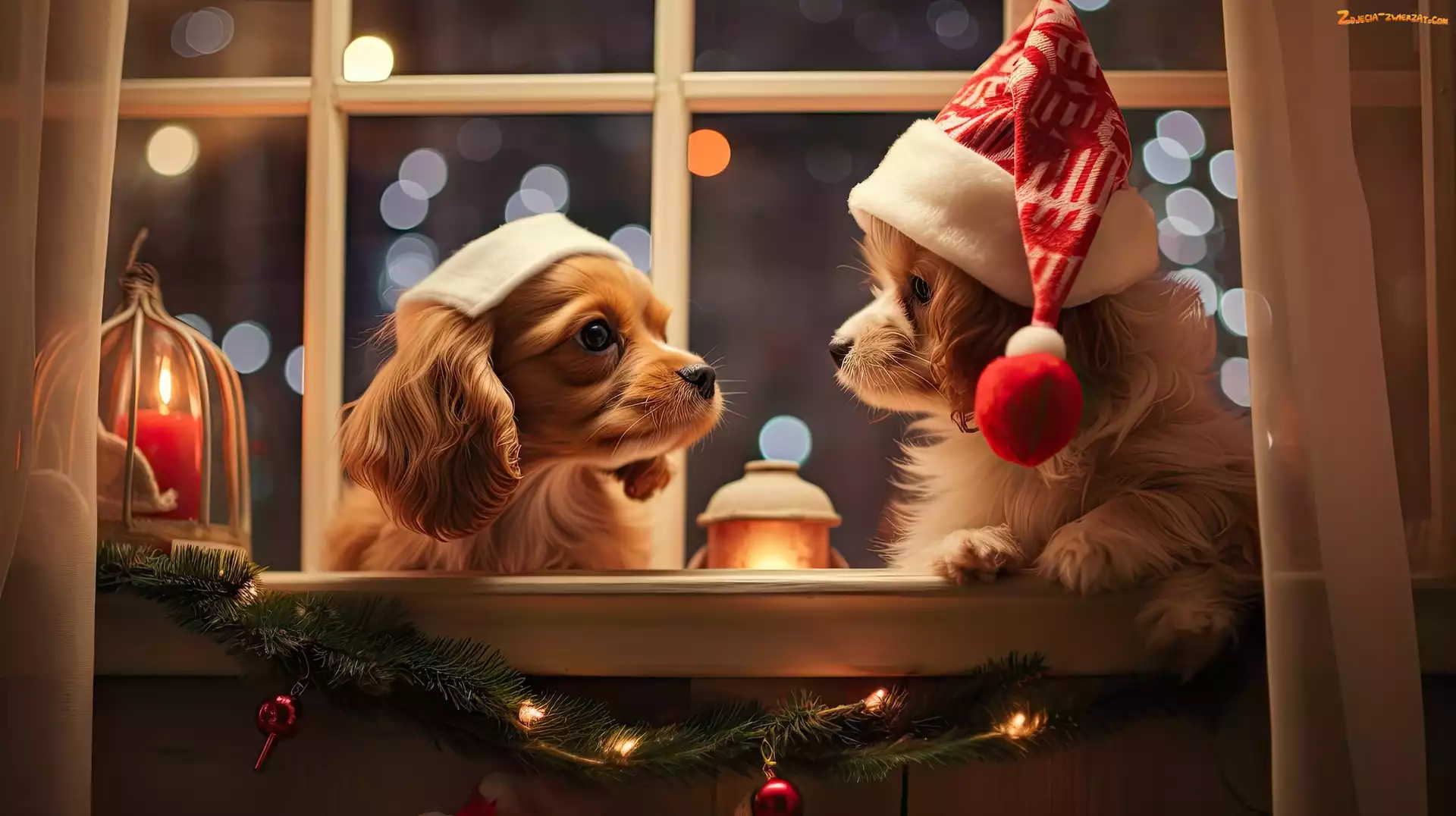 Zdjęcie: Okno, Czapki, Świeca, Psy, Szczeniaki