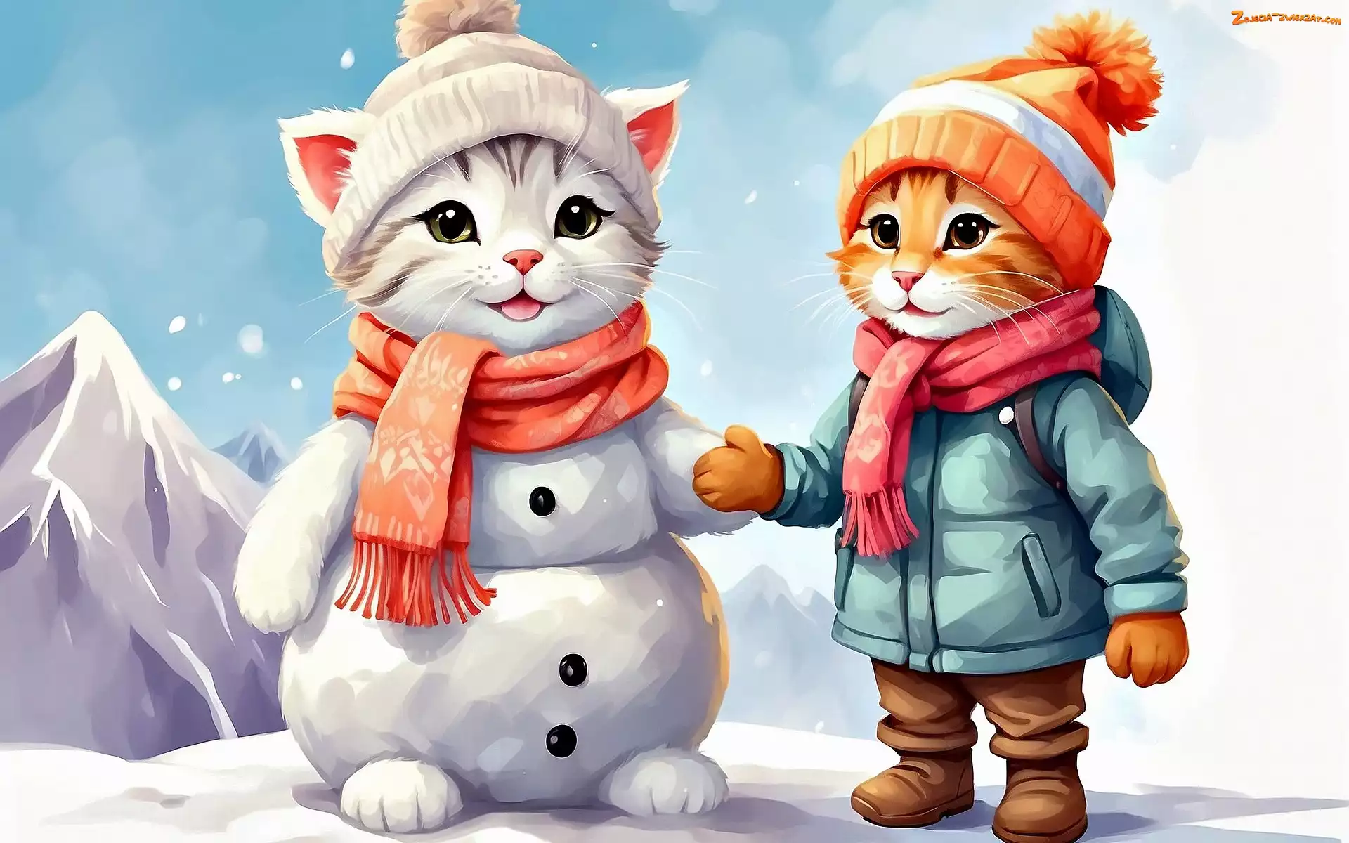 Szaliki, Zima, Ubrania, Czapki, Grafika, Koty, Góry