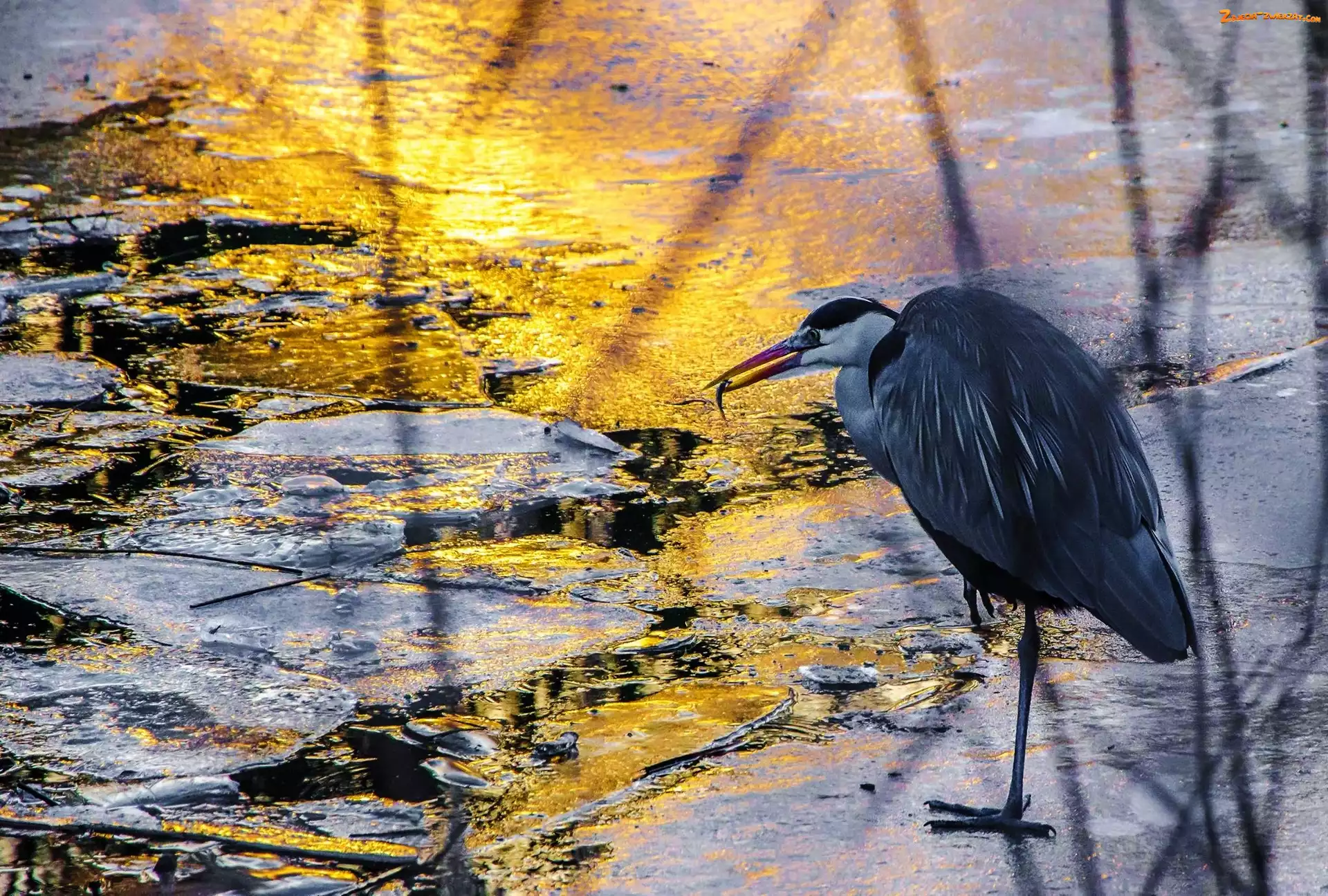 Zdjęcie: Zima, Czapla, Potok
