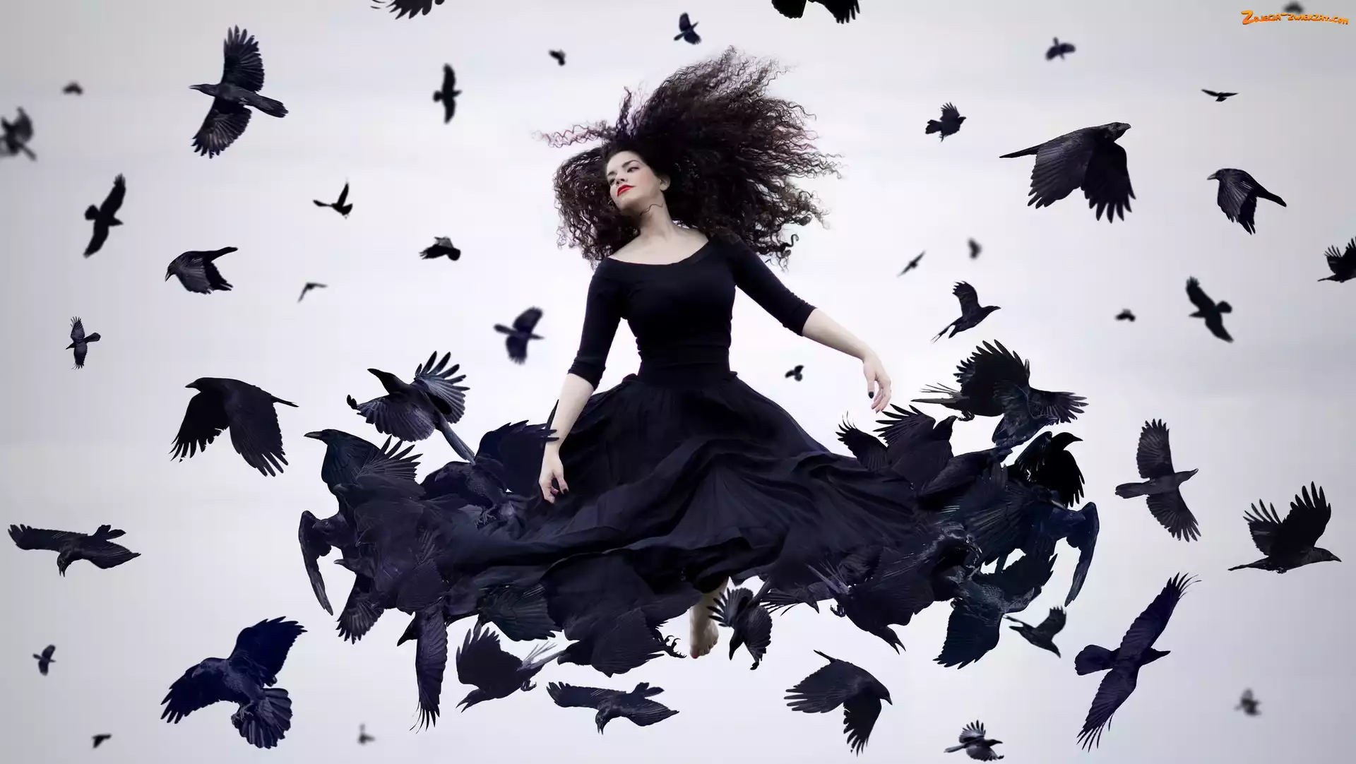 Zdjęcie: Czarna, Kruki, Kobieta, Suknia