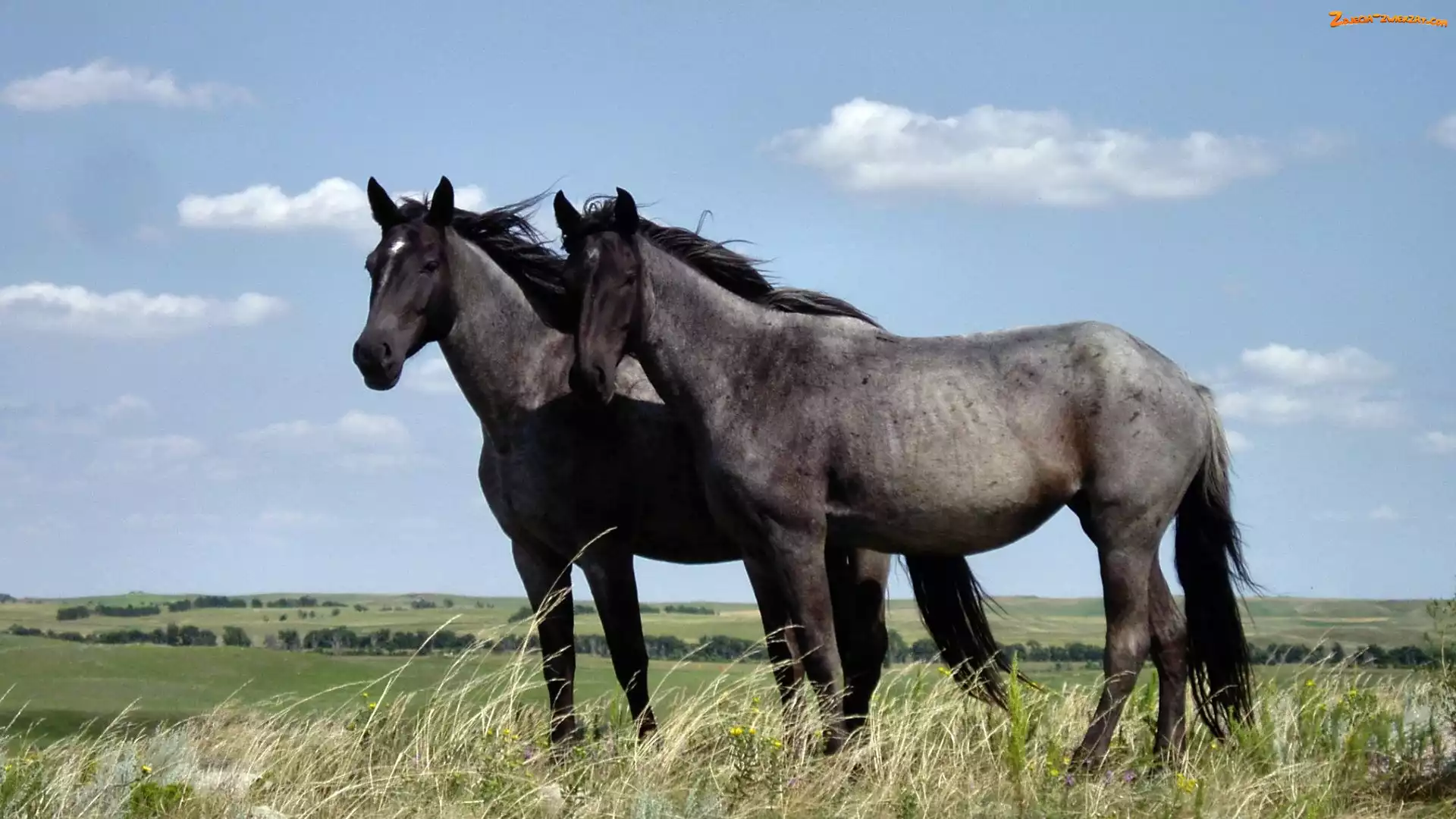 Zdjęcie: Czarne, Łąka, Dwa, Konie