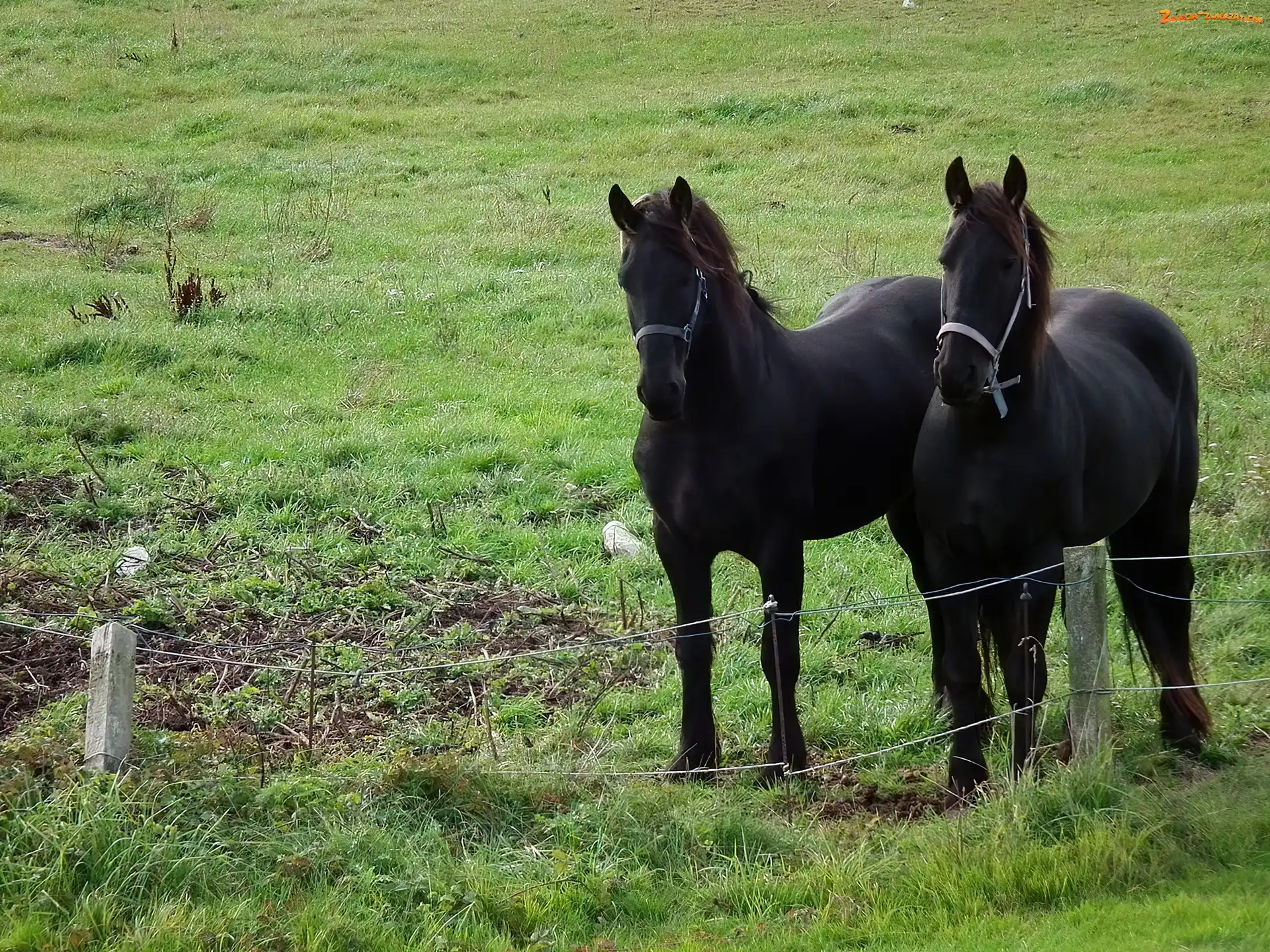 Zdjęcie: Czarne, Łąka, Dwa, Konie