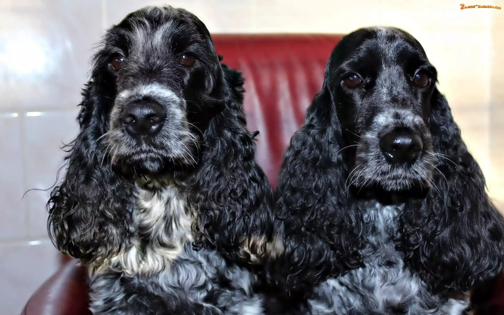 Zdjęcie: Czarne, Spaniel, Dwa, Psy