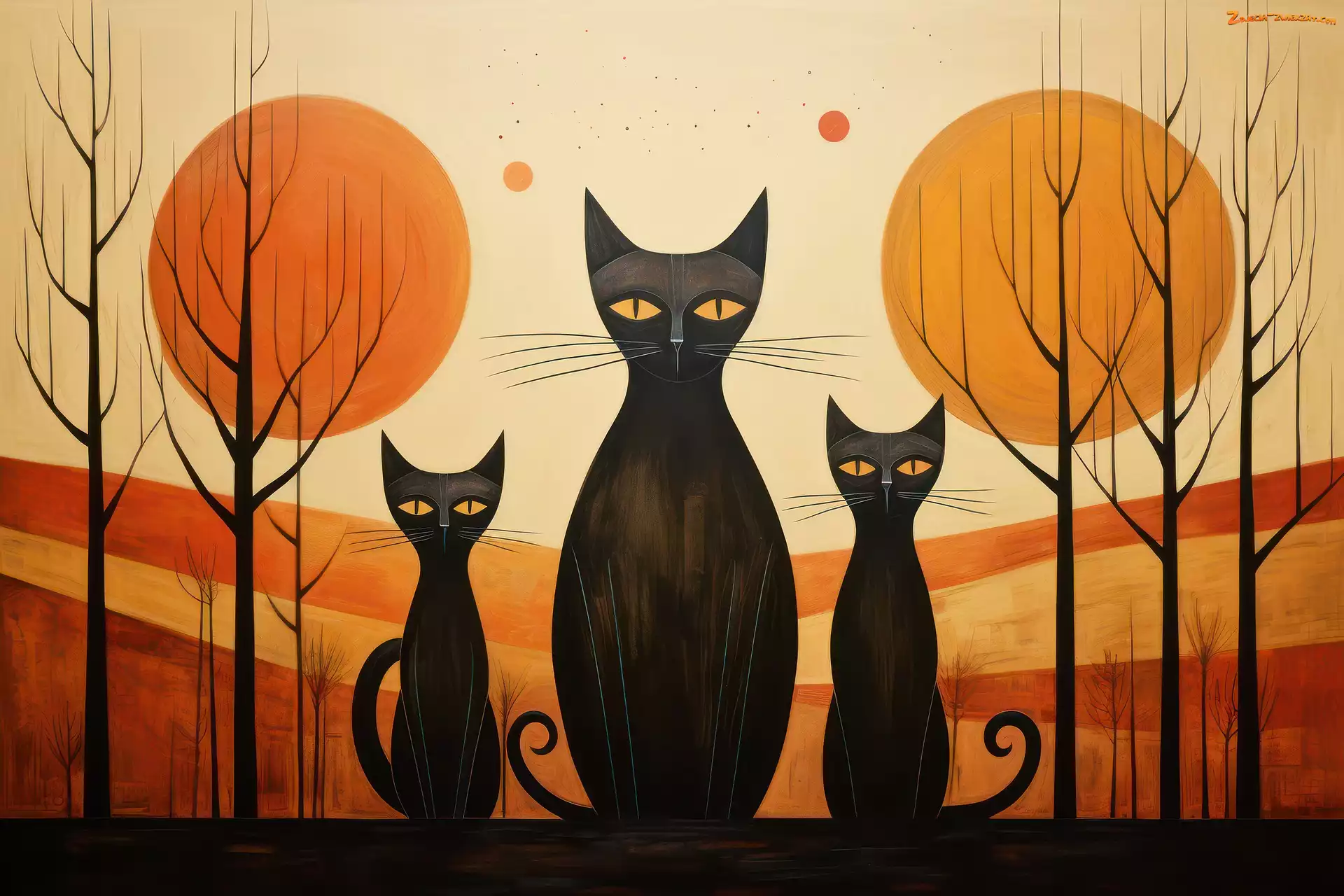 Zdjęcie: Grafika, Trzy, Koty, Czarne
