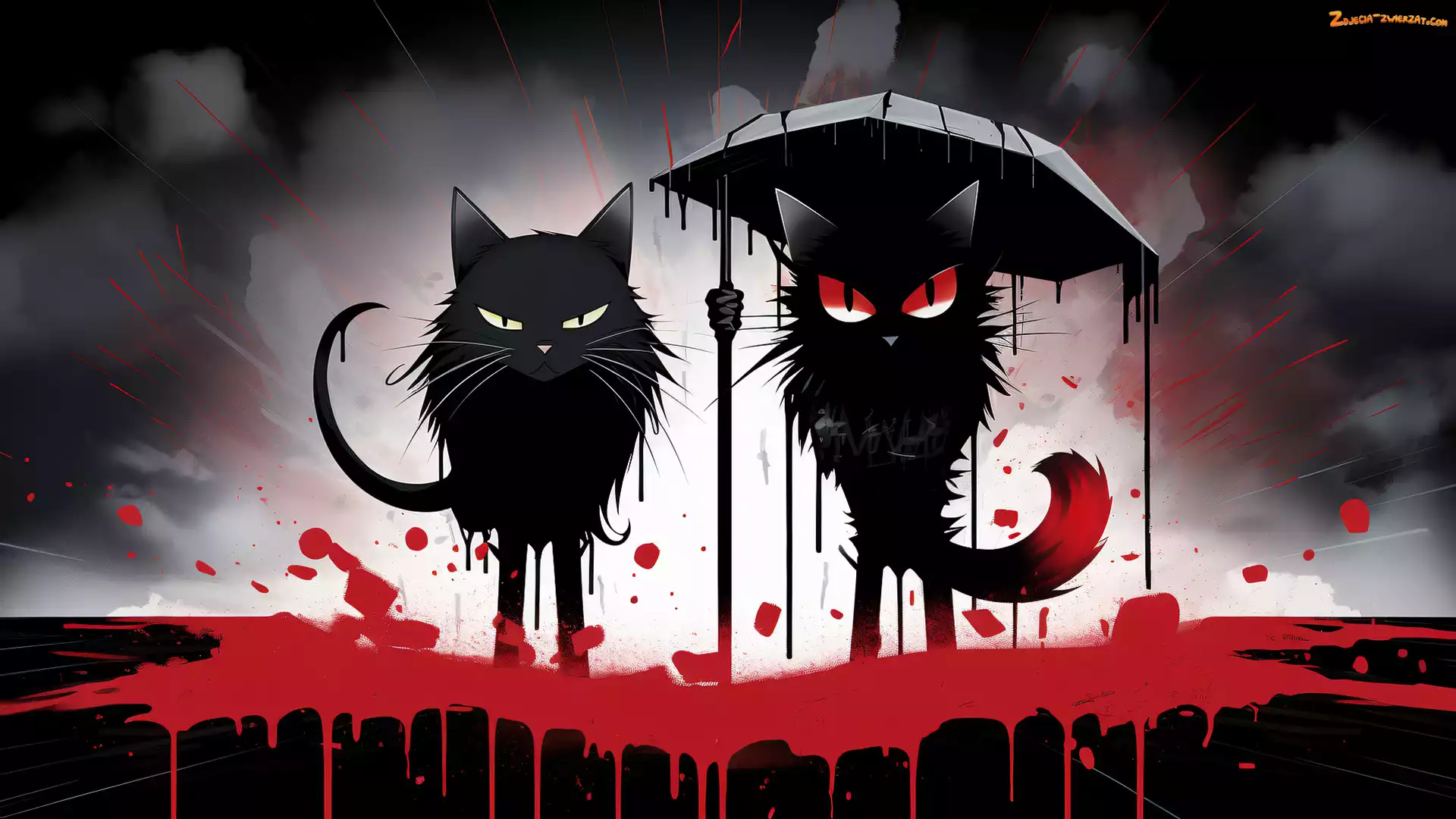 Zdjęcie: Dym, Parasolka, Rozlana, Grafika, Farba, Dwa, Koty, Czarne