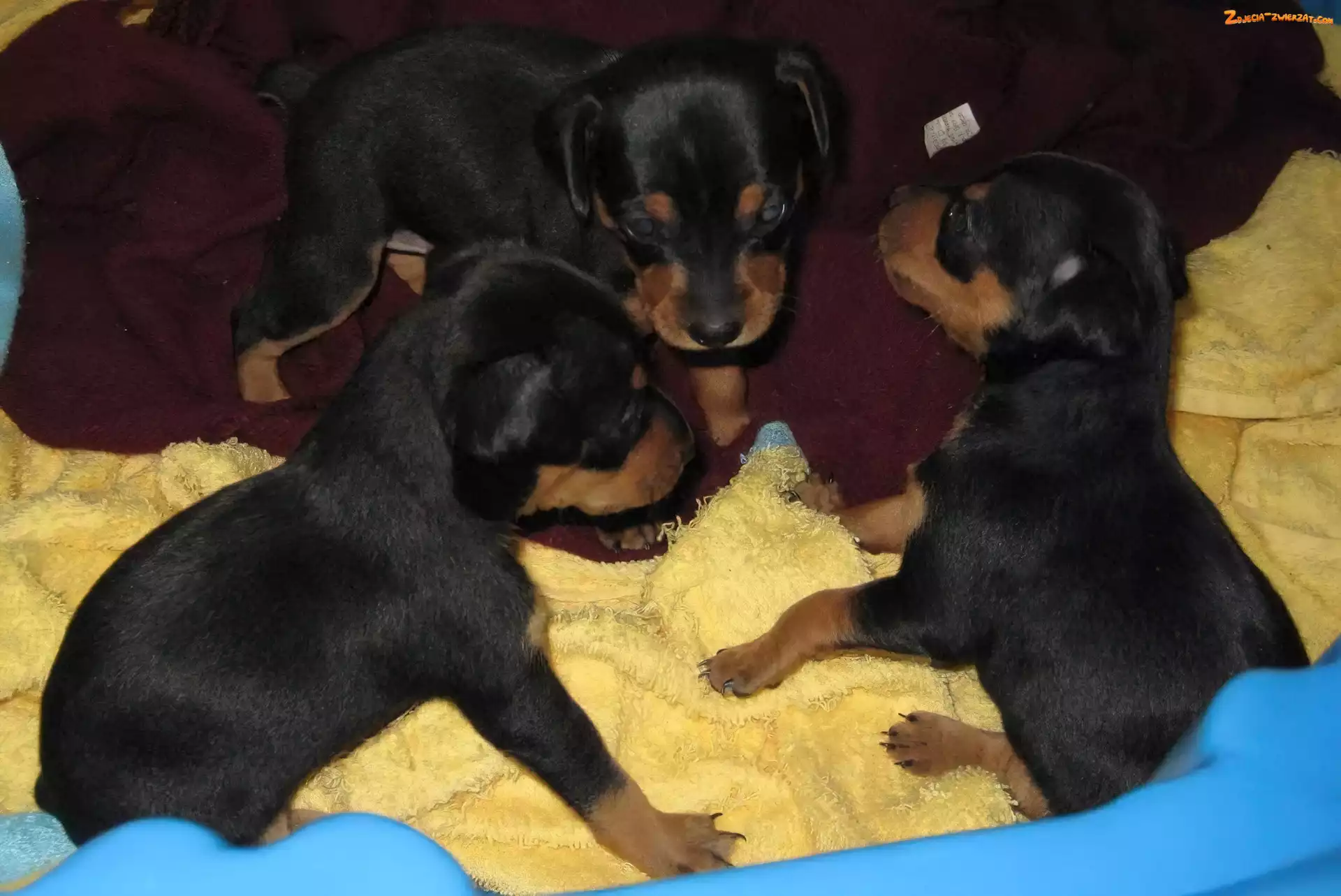 Zdjęcie: trzy, czarne, Pinczer miniaturowy, szczeniaki