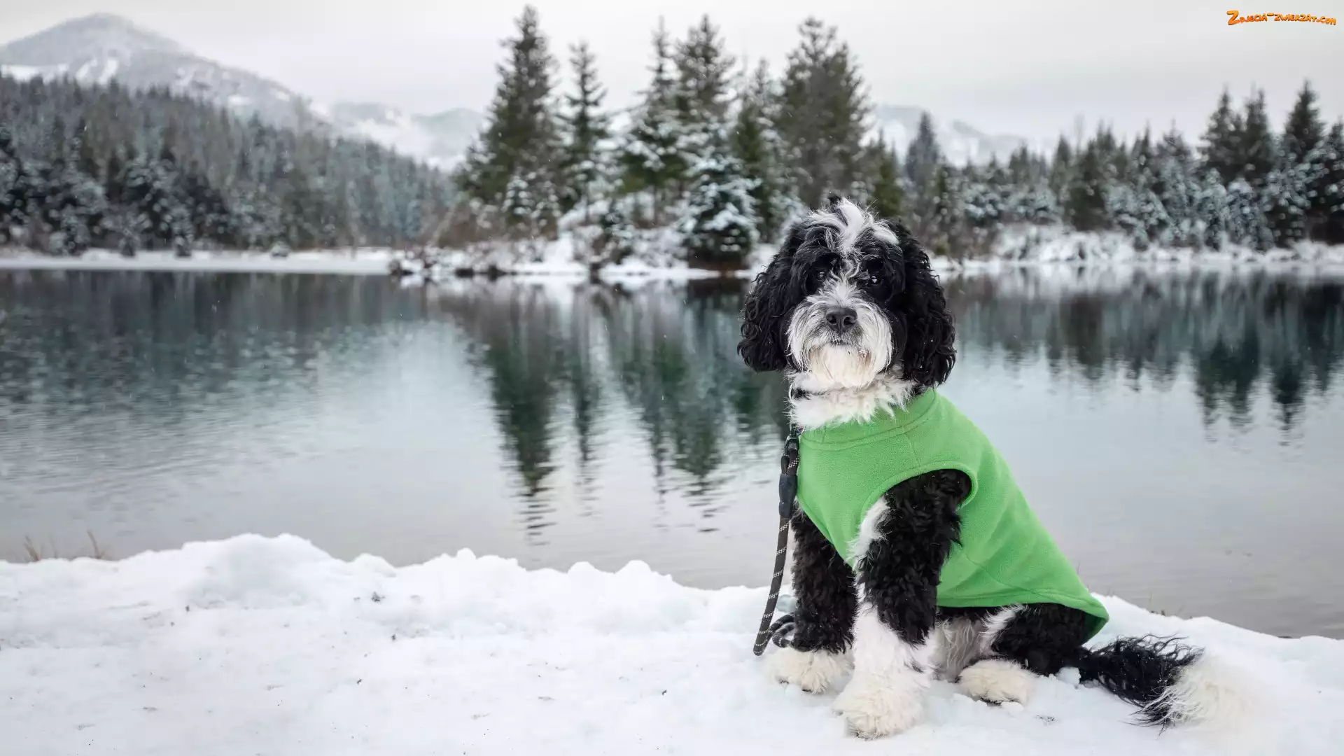 Zdjęcie: Smycz, Czarno-biały, Zima, Ubranko, Pies, Zielone