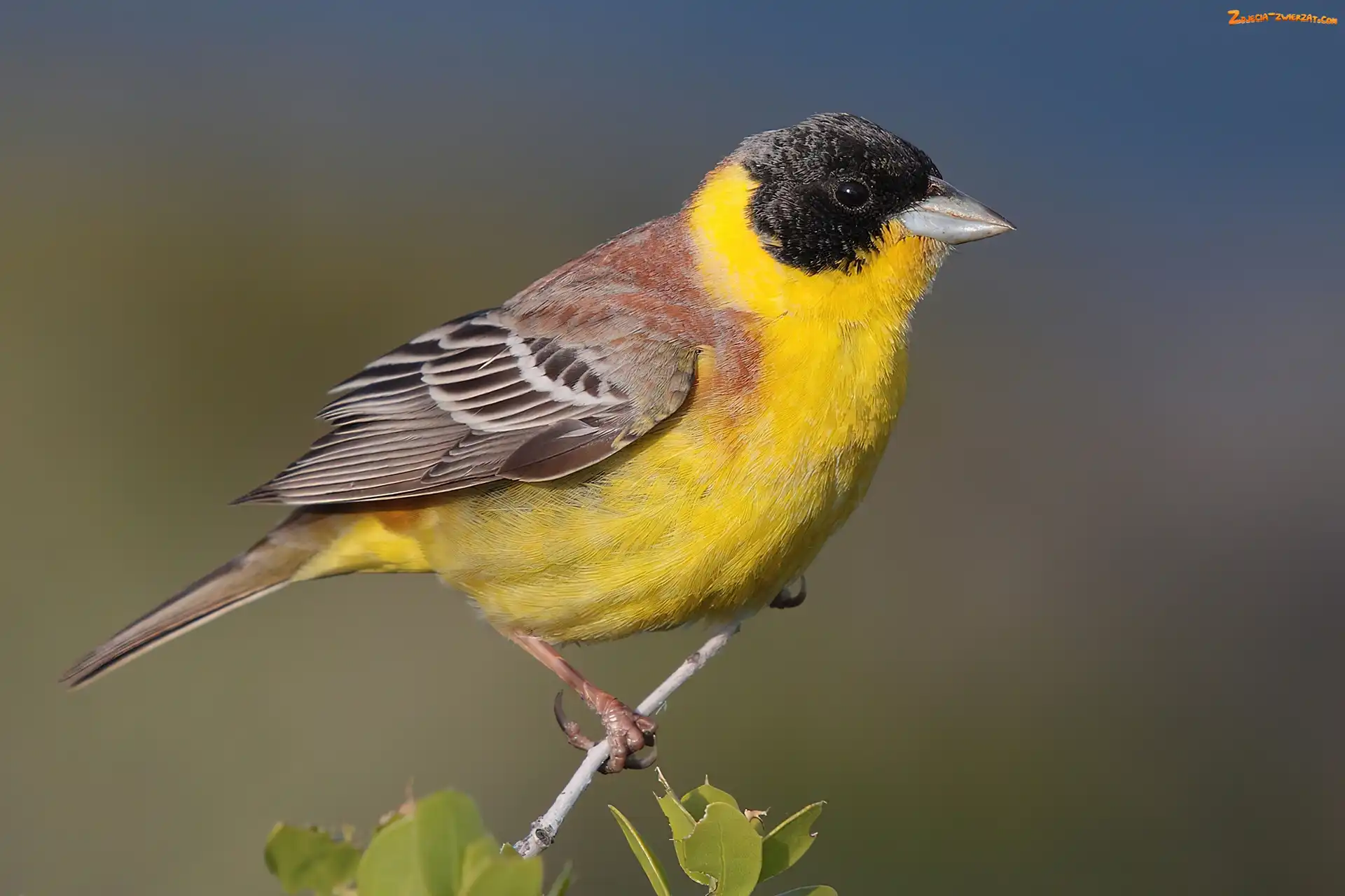 Zdjęcie: Trznadel Czarnogłowy, Gałązka