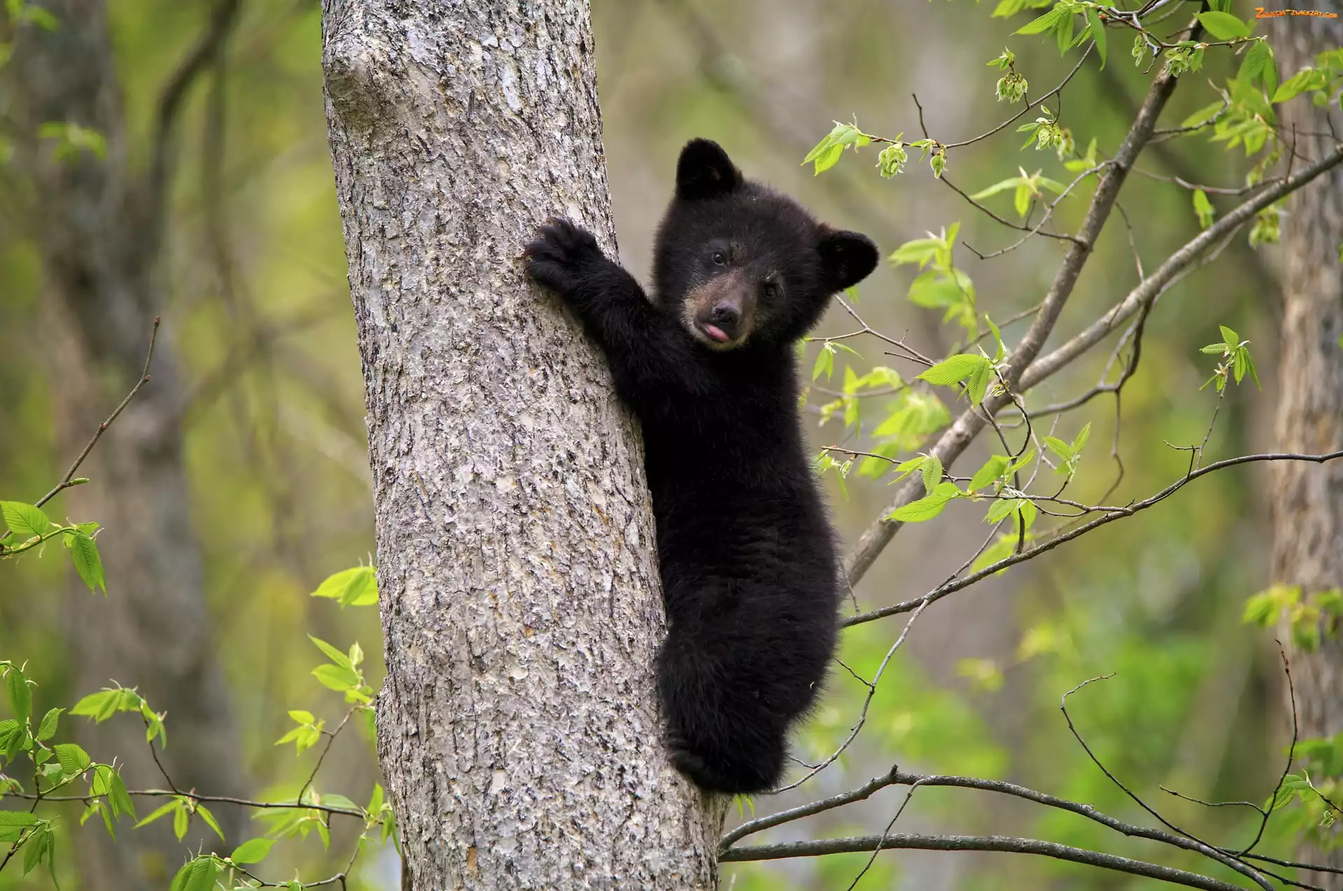 Niedźwiedź czarny, Młody, Las, Drzewo, Niedźwiadek amerykański, Baribal