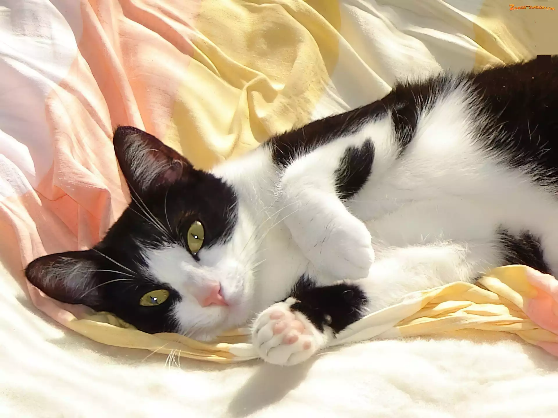 Zdjęcie: Czarny, Pościel, Biało, Kotek