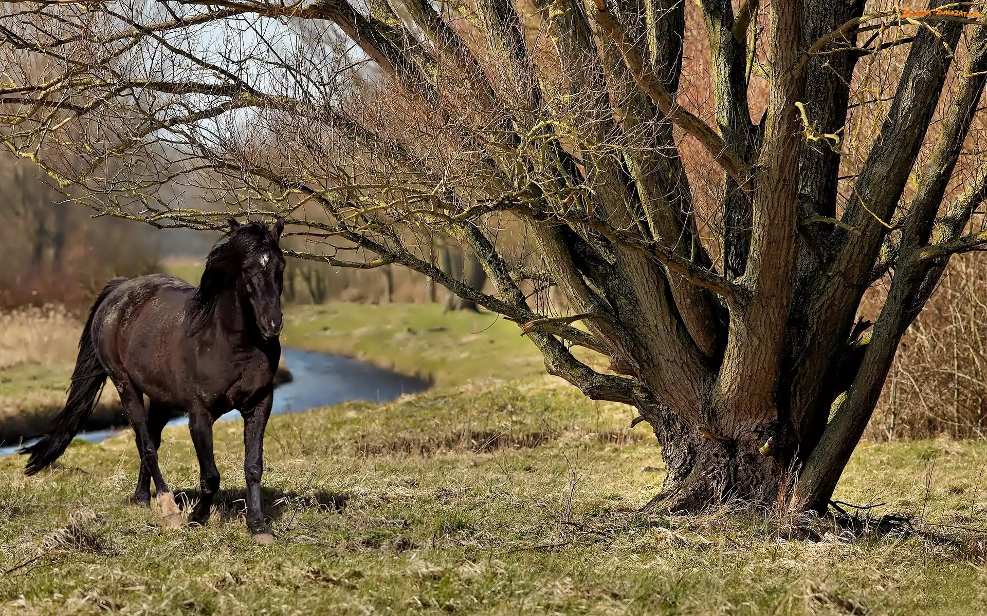 Zdjęcie: Drzewa, Czarny, Koń