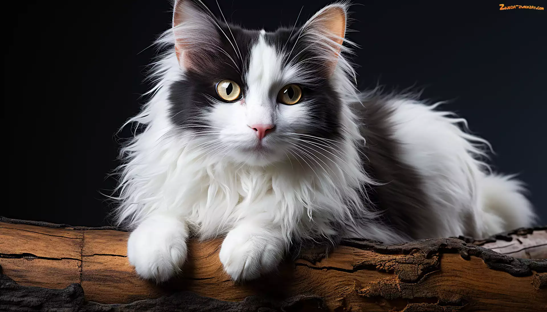 Zdjęcie: Biało-czarny, Kot, Kłoda, Pyszczek